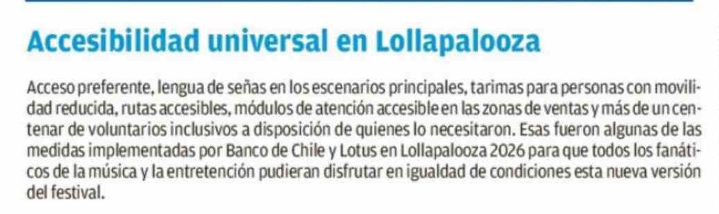 Accesibilidad universal en Lollapalooza 26-03-2026 El Líder |