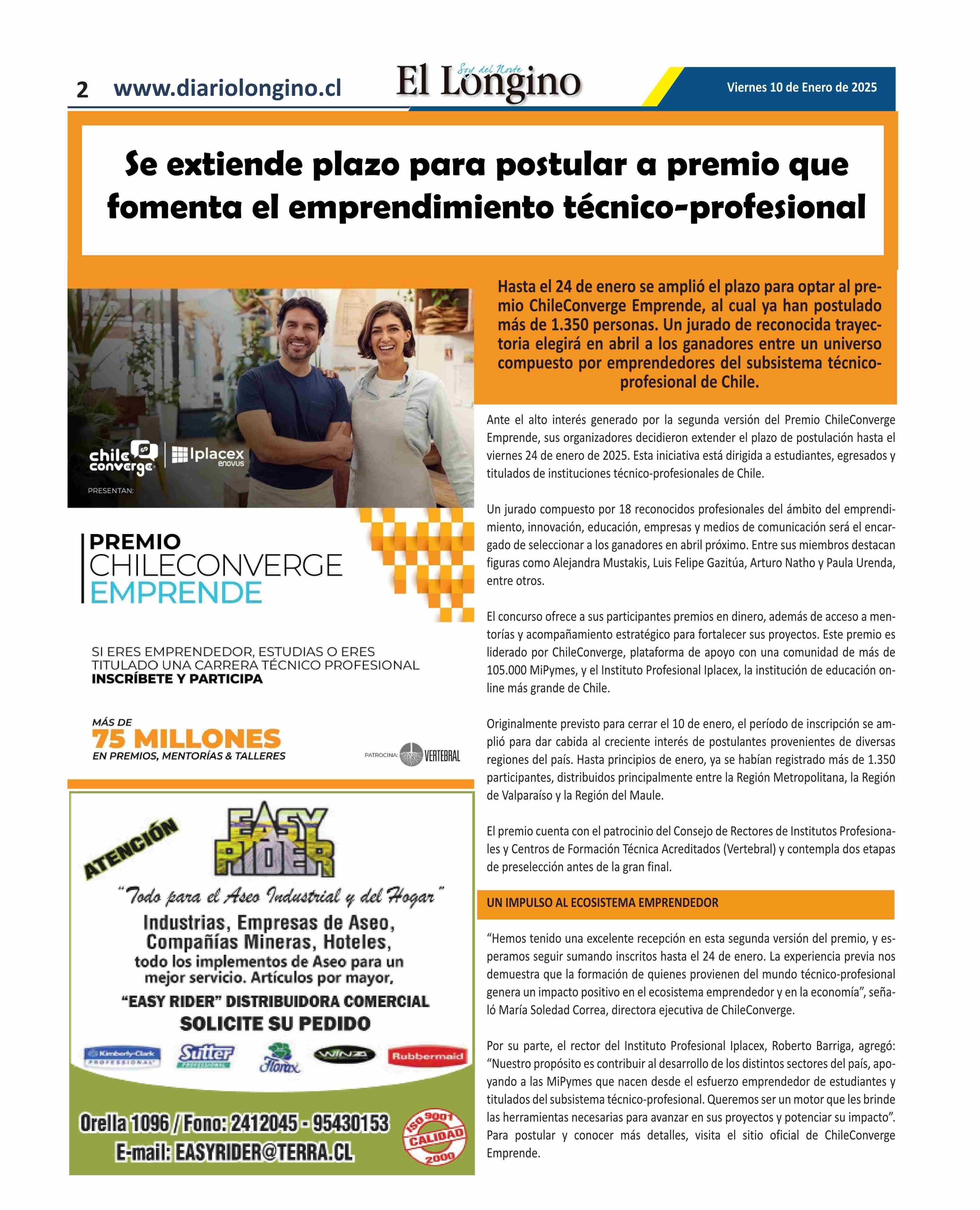 $e extiende plazo para postular a premio que fomenta el emprendimiento técnico-profesional 10-01-2025 El Longino |