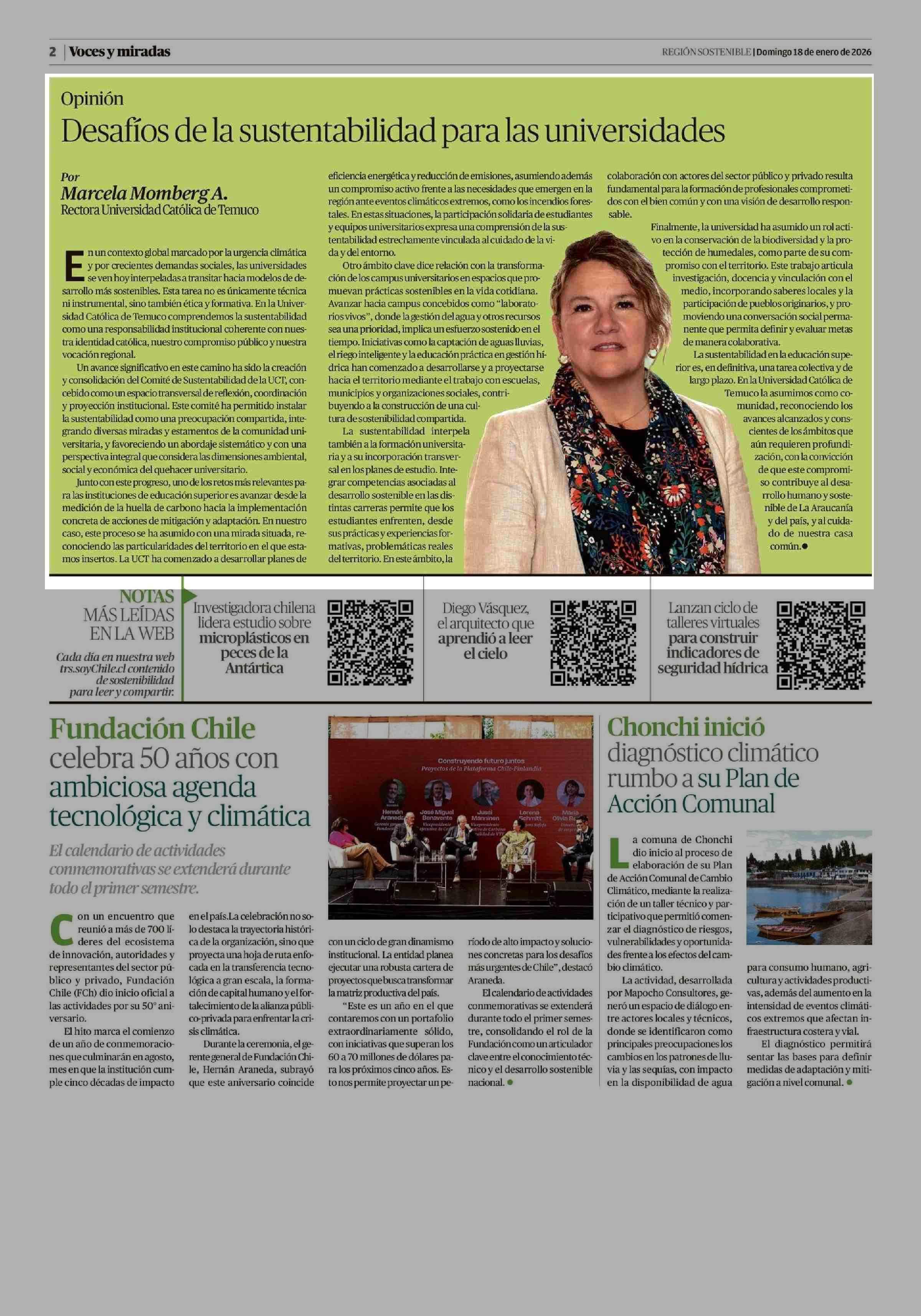 Columnas de Opinión: Desafíos de la sustentabilidad para las universidades 18-01-2026 Diario Austral Región de Los Ríos |