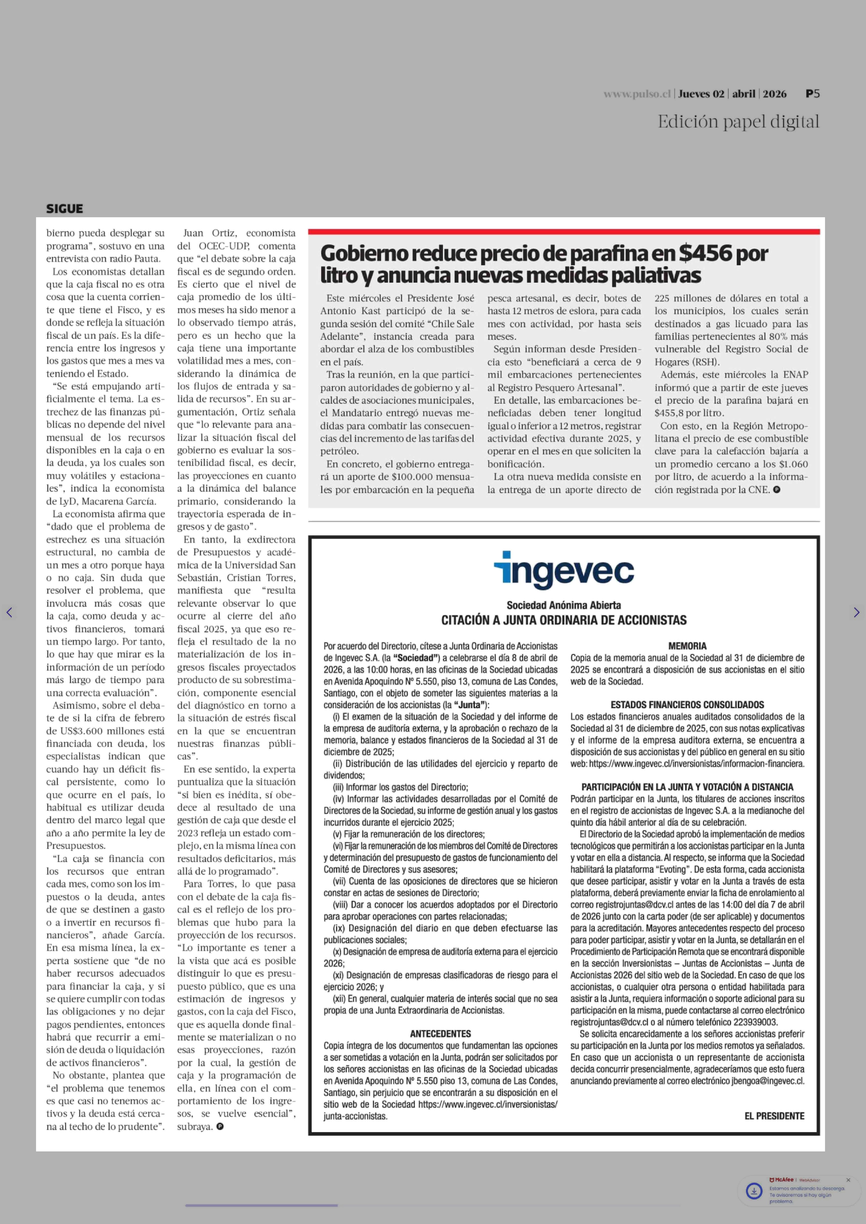 Fecha: 02-04-2026 Sector: Noticia general Región: Región Metropolitana de Santiago