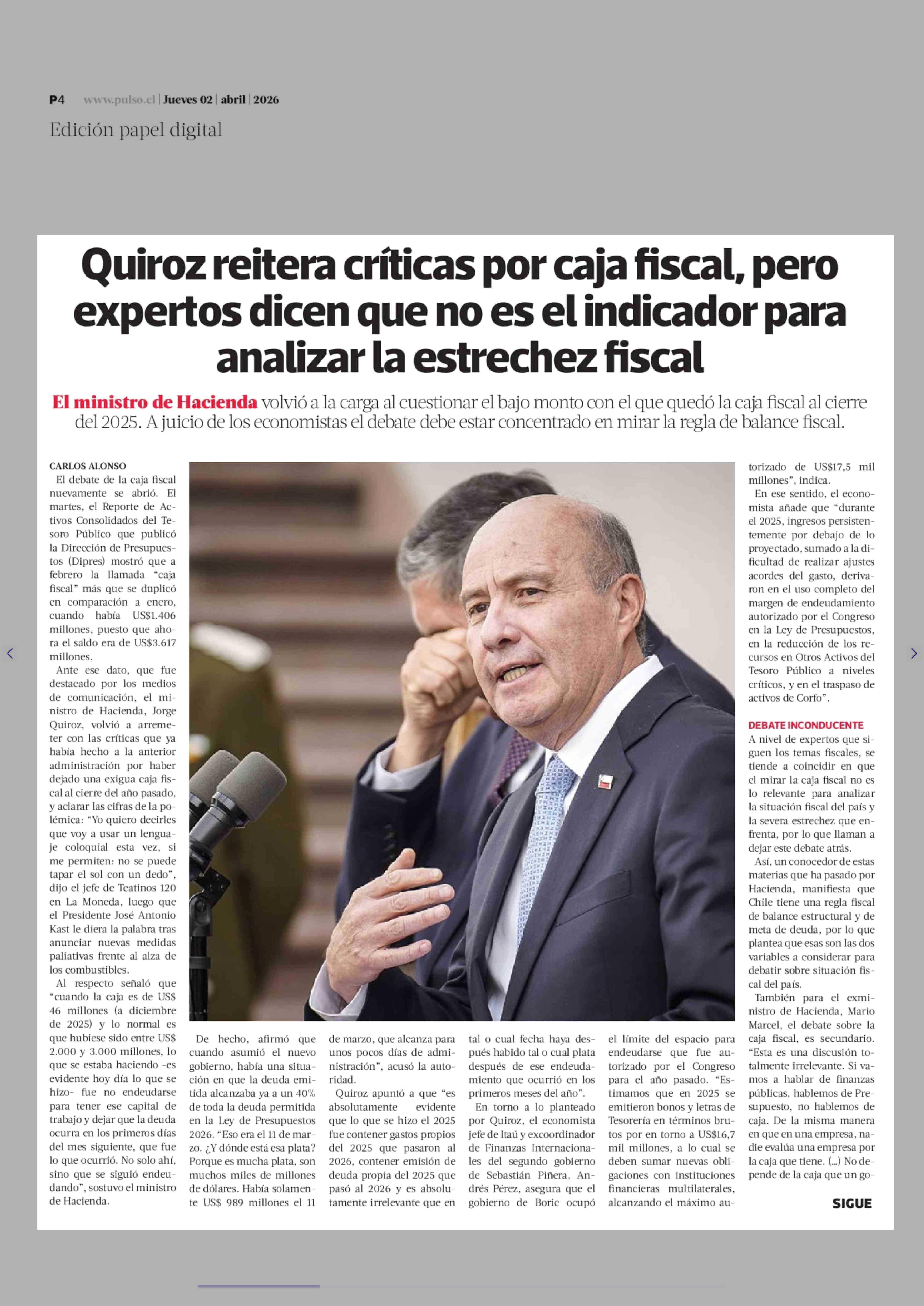 Título: Quiroz reitera críticas por caja fiscal, pero expertos dicen que no es el indicador para analizar la estrechez fiscal