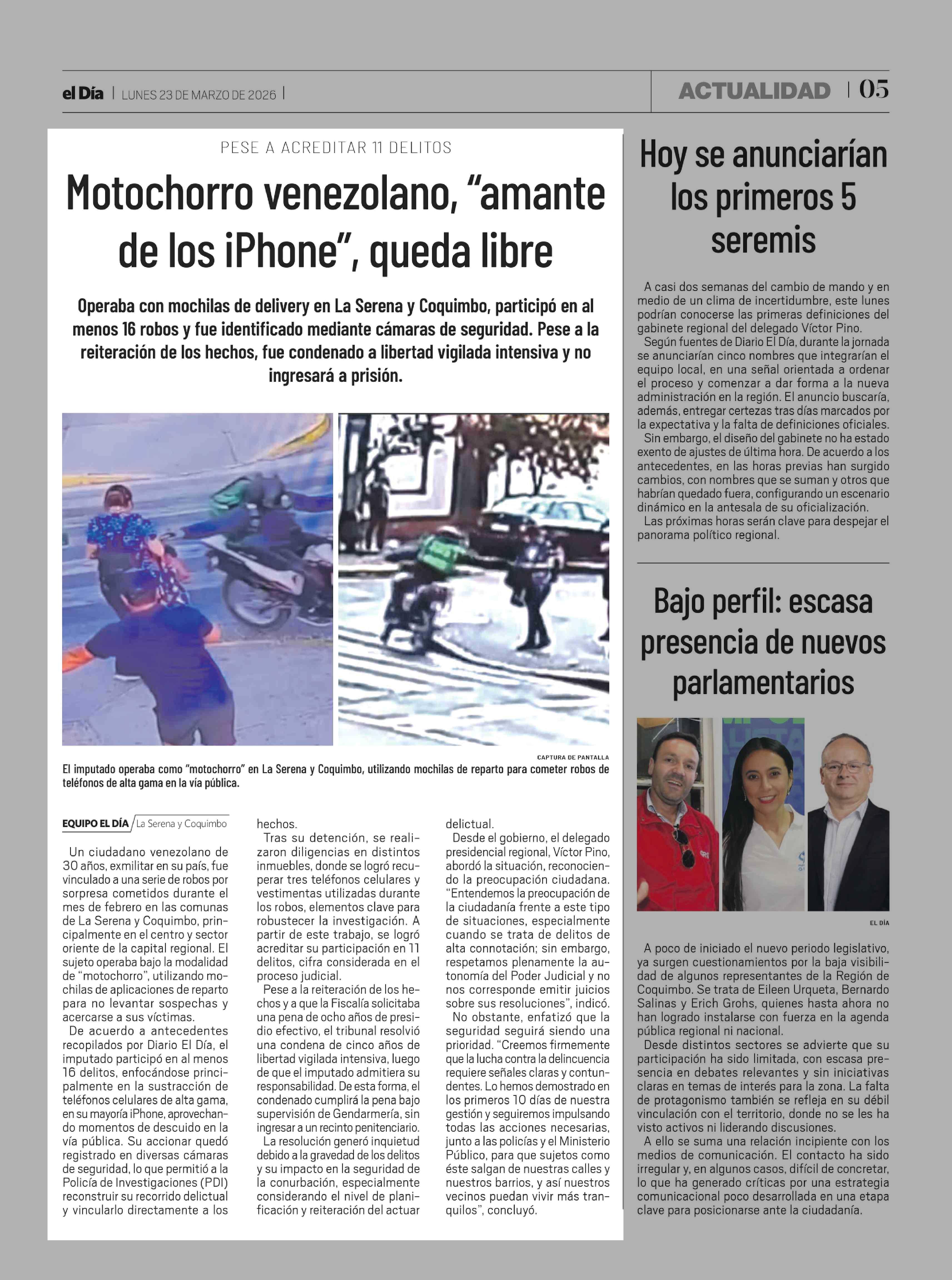 Motochorro venezolano, "amante de los iPhone", queda libre 23-03-2026 El Día |