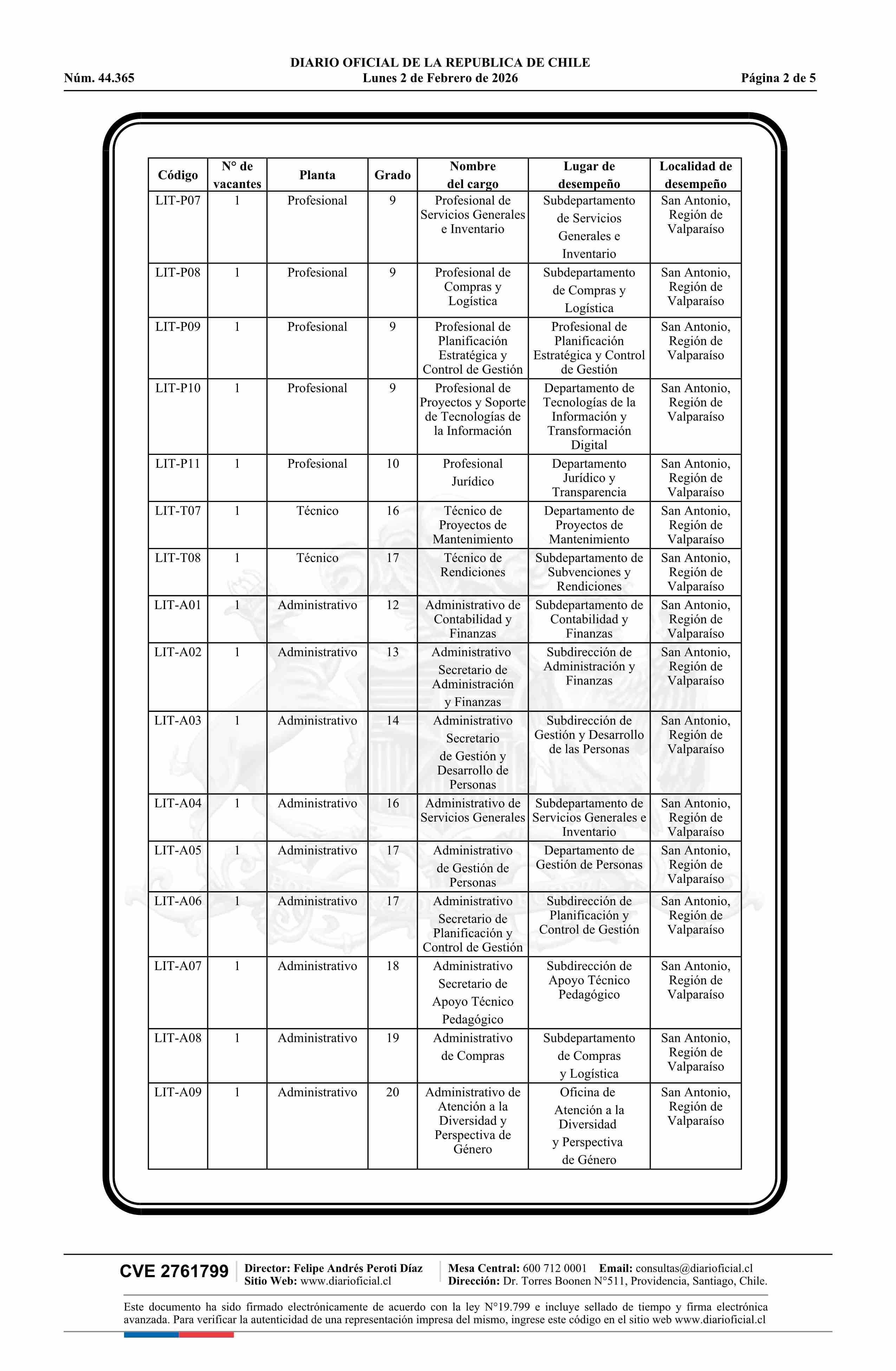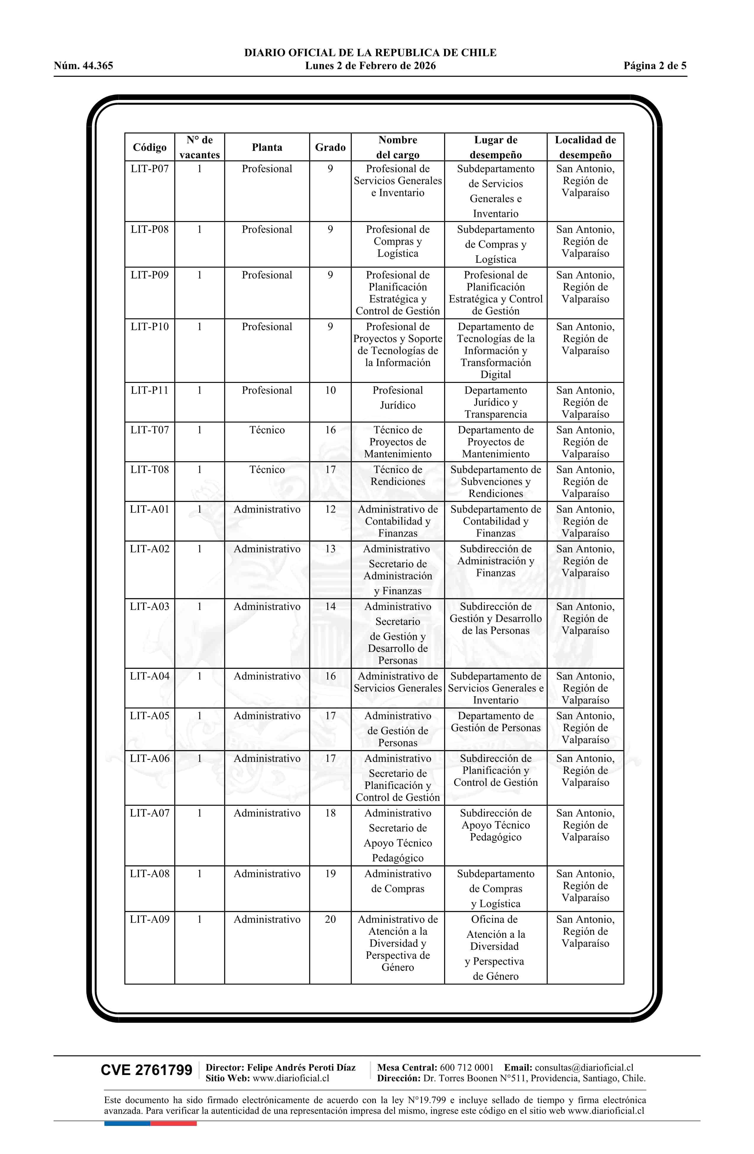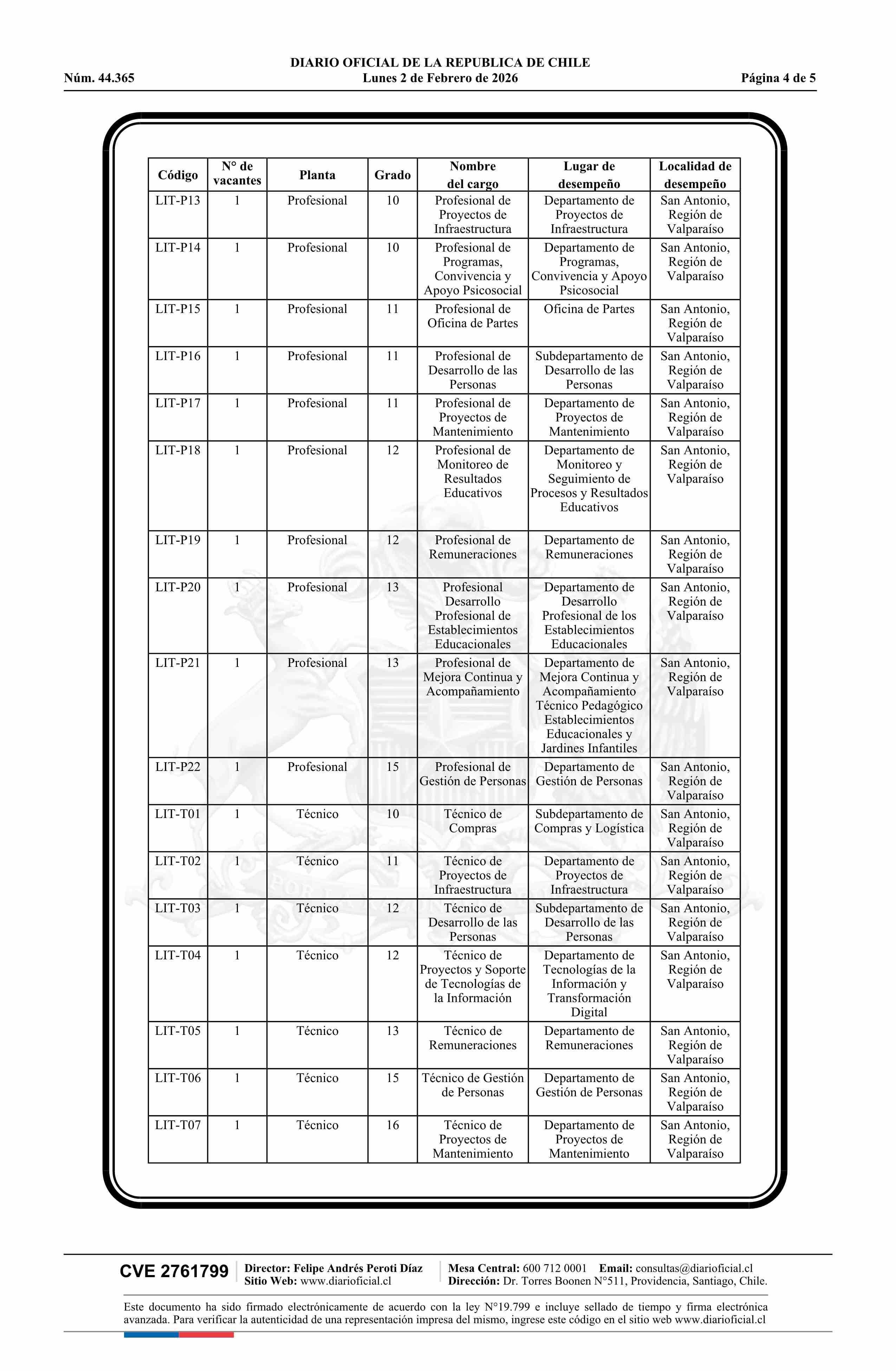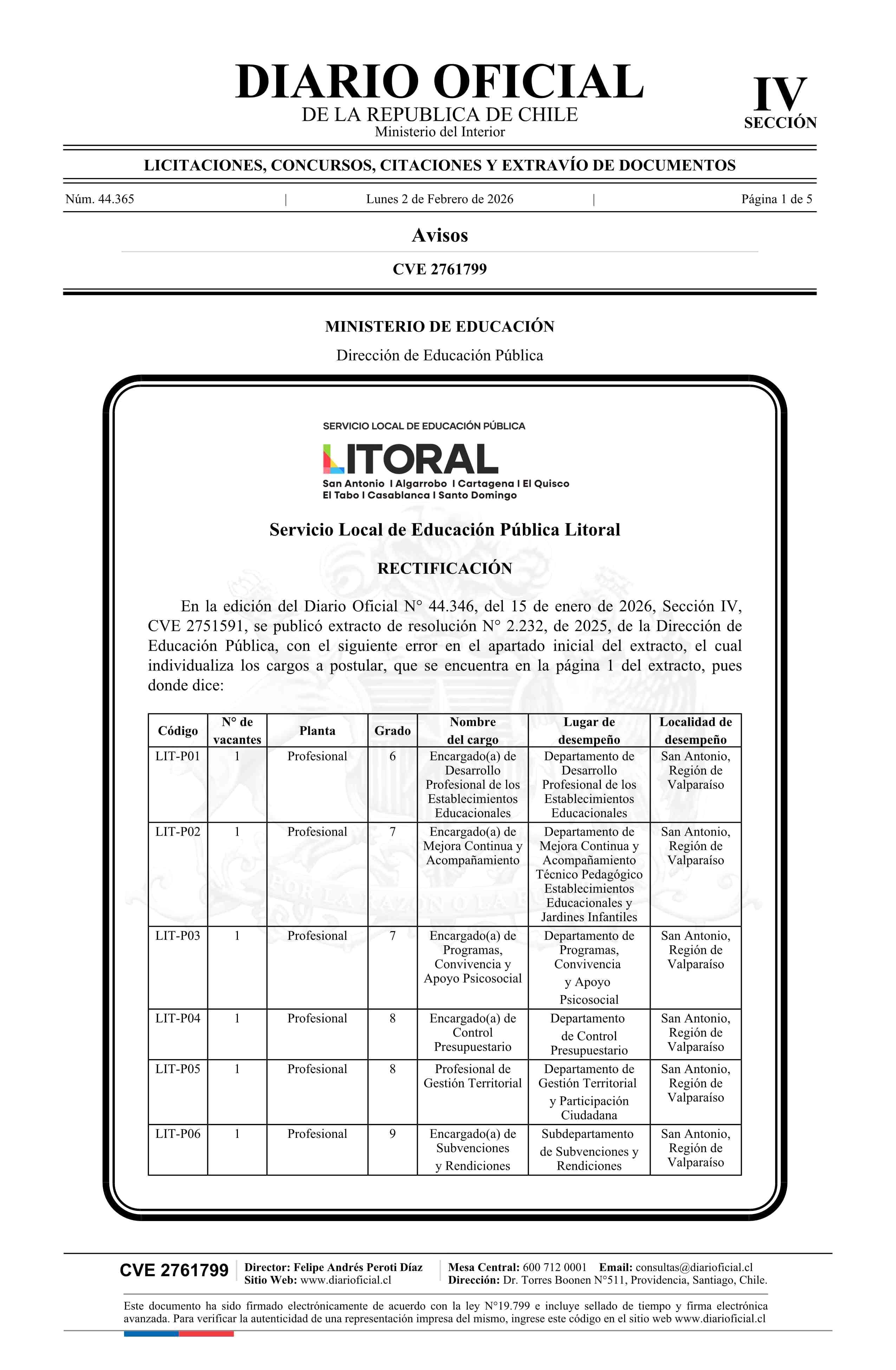 AVISO LICITACIONES: Rectificación de llamado a concurso público para cargos que indica 02-02-2026 Diario Oficial Edición Electrónica |