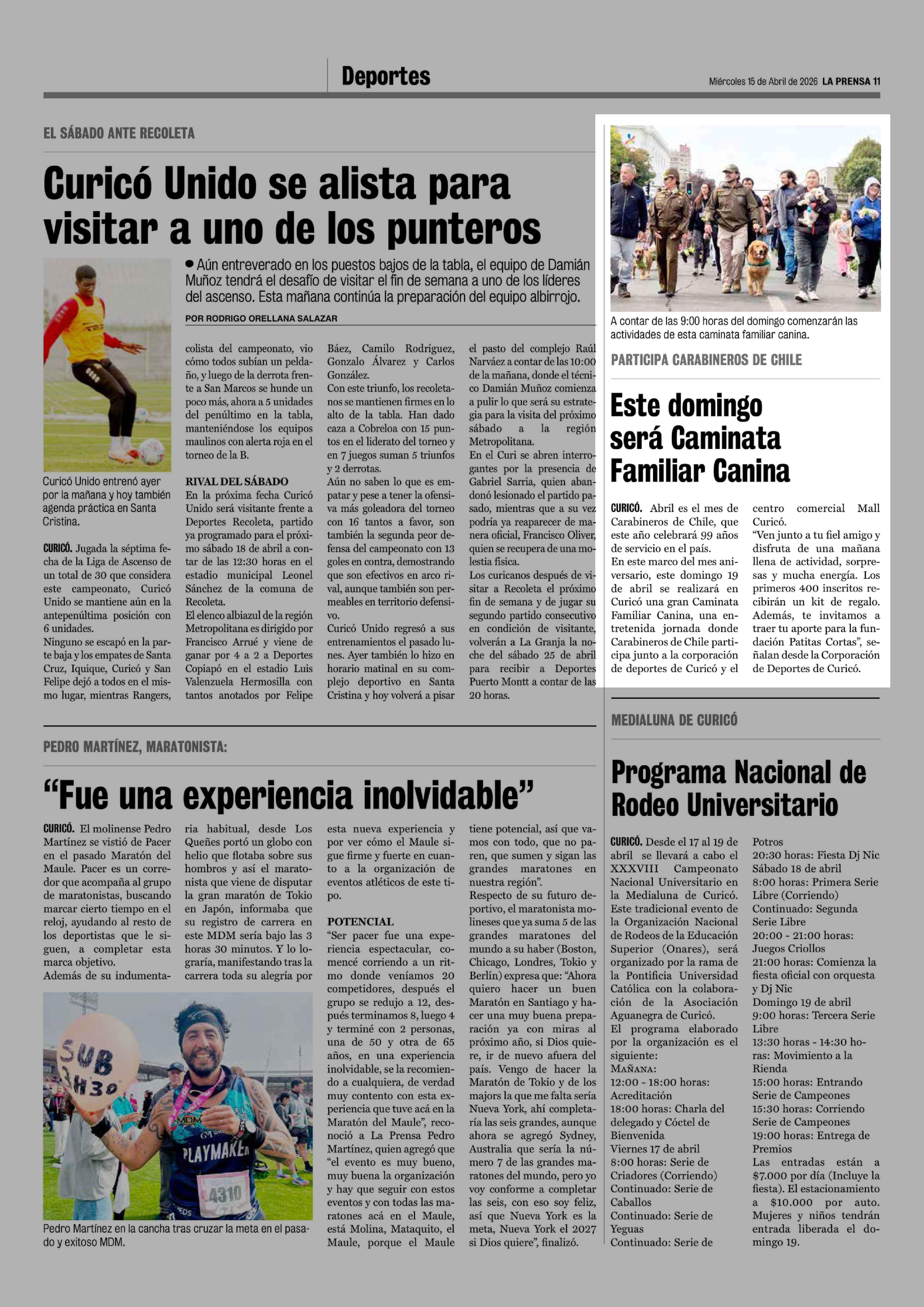 Este domingo será Caminata Familiar Canina 15-04-2026 La Prensa de Curicó |