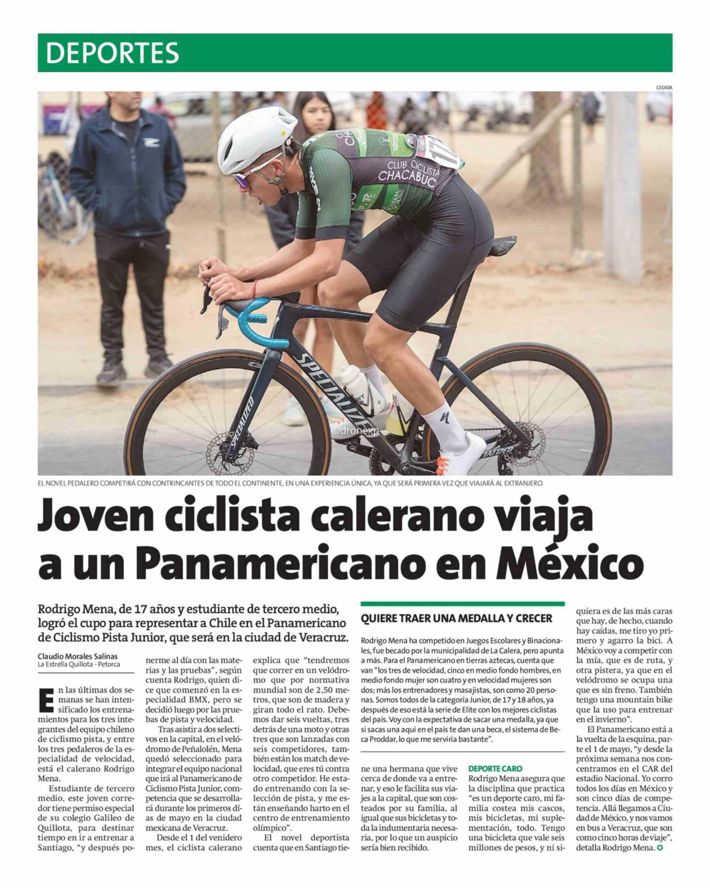 Joven ciclista calerano viaja a un Panamericano en México 17-04-2026 La Estrella de Quillota |