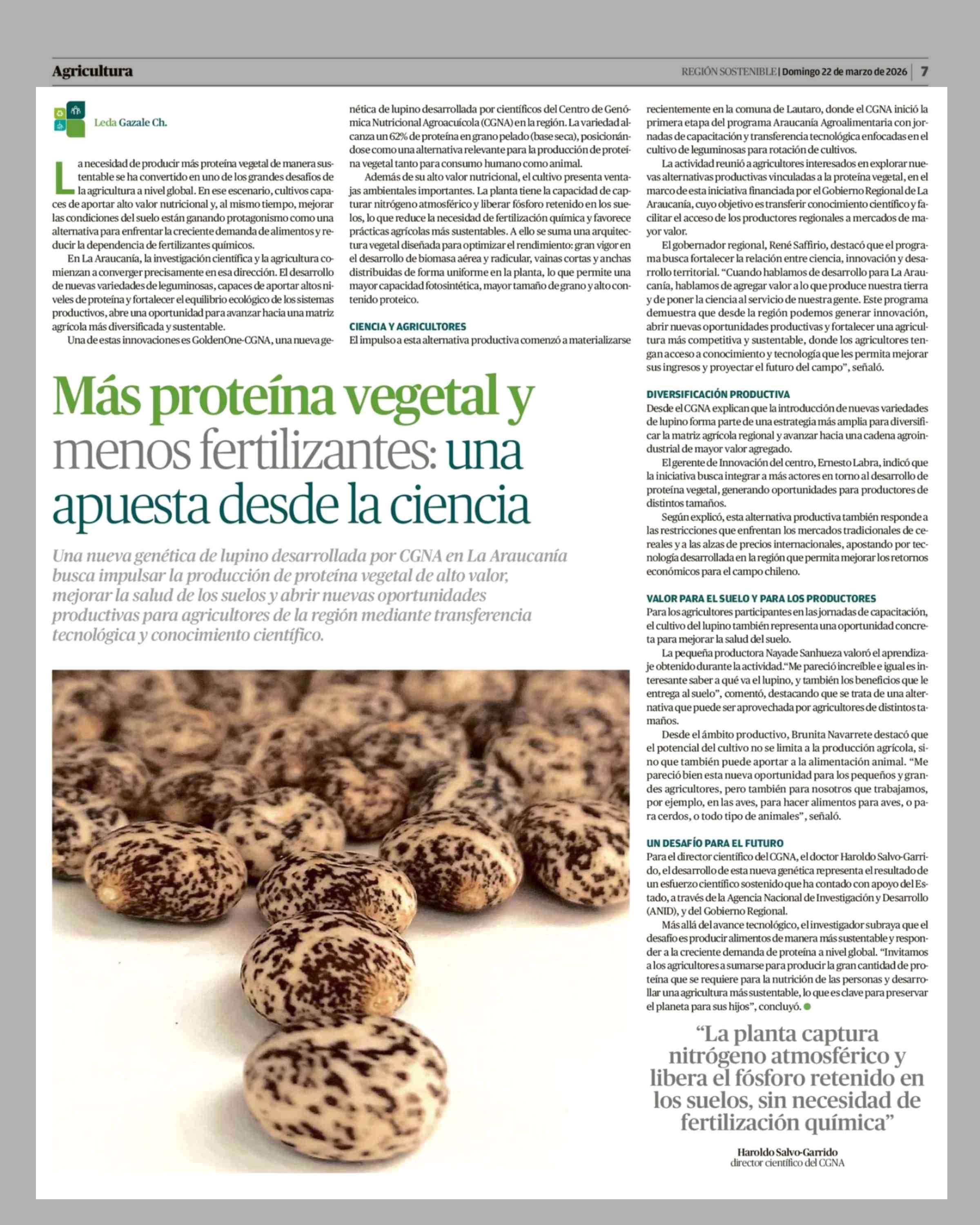 Título: Más proteína vegetal y menos fertilizantes: una apuesta desde la ciencia