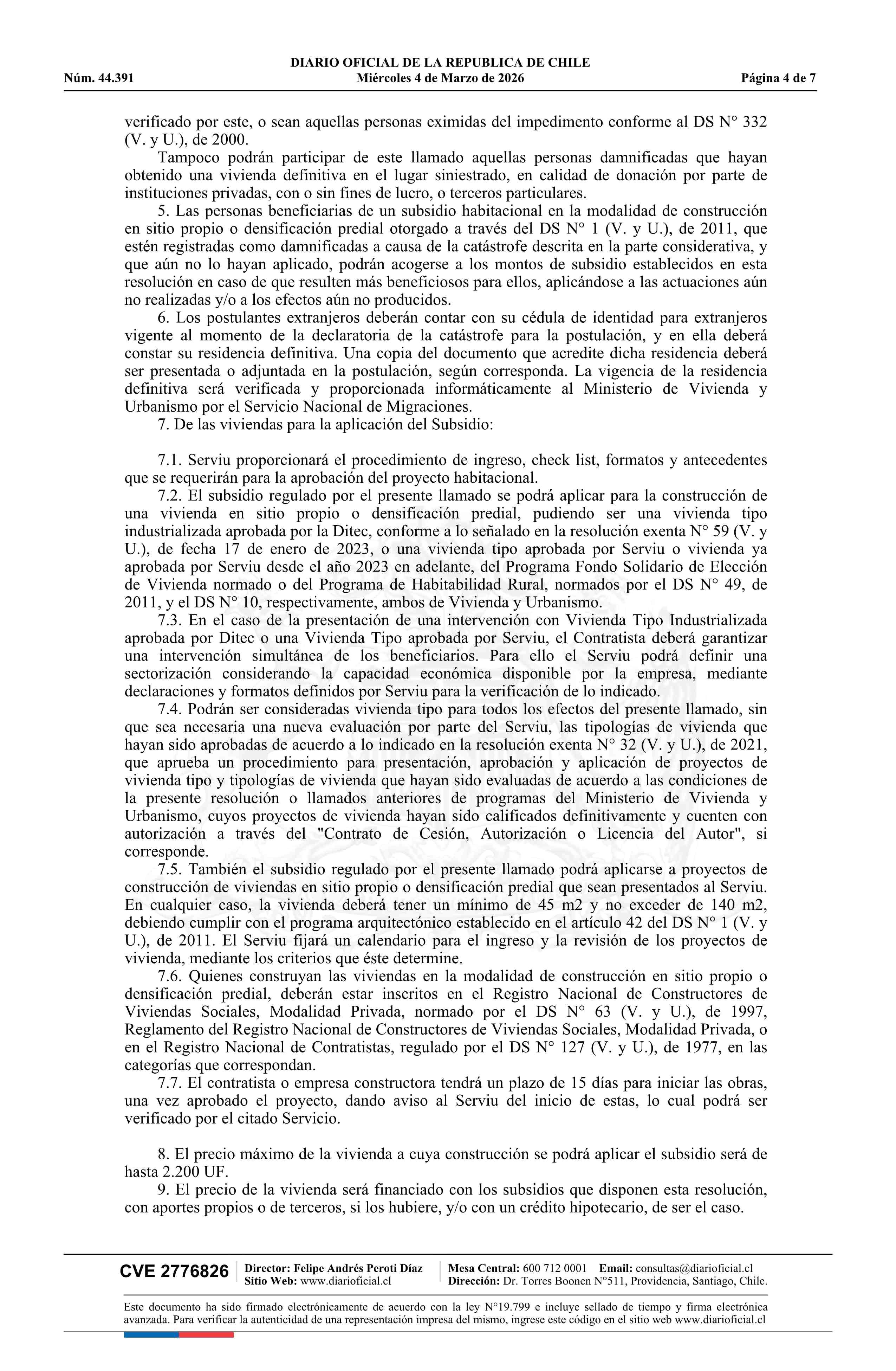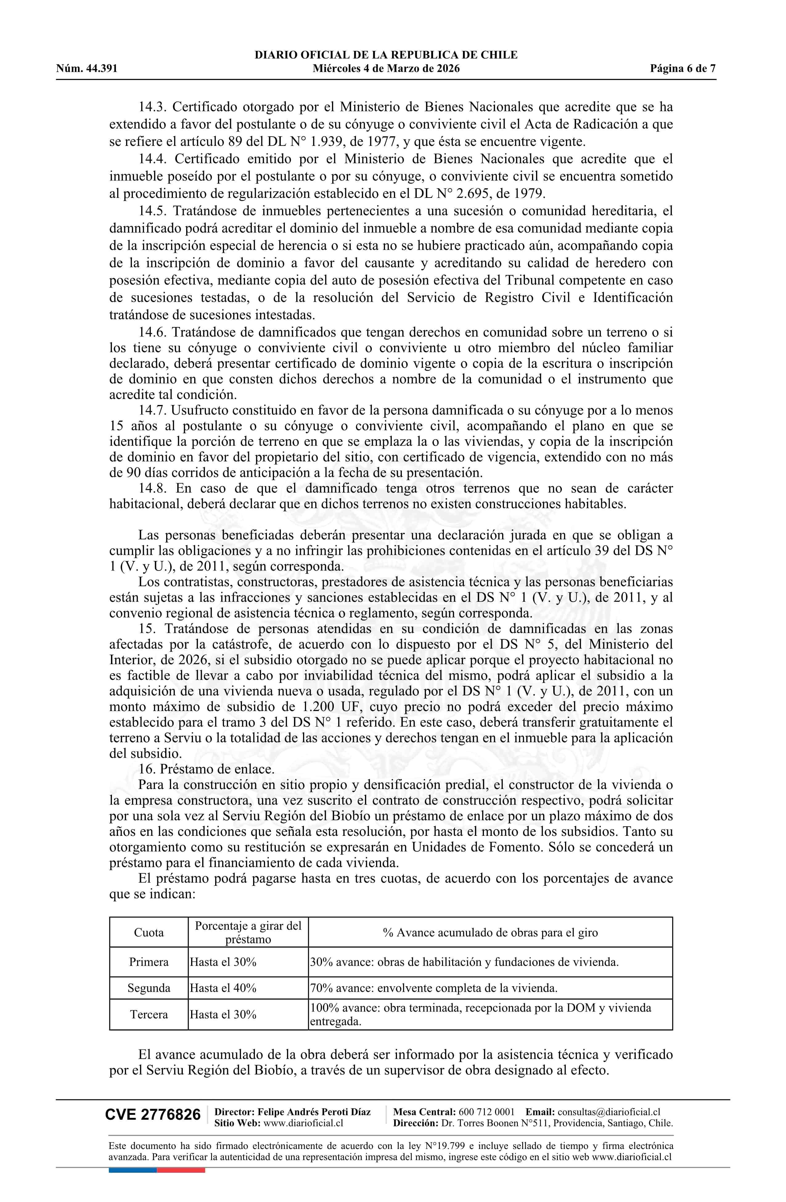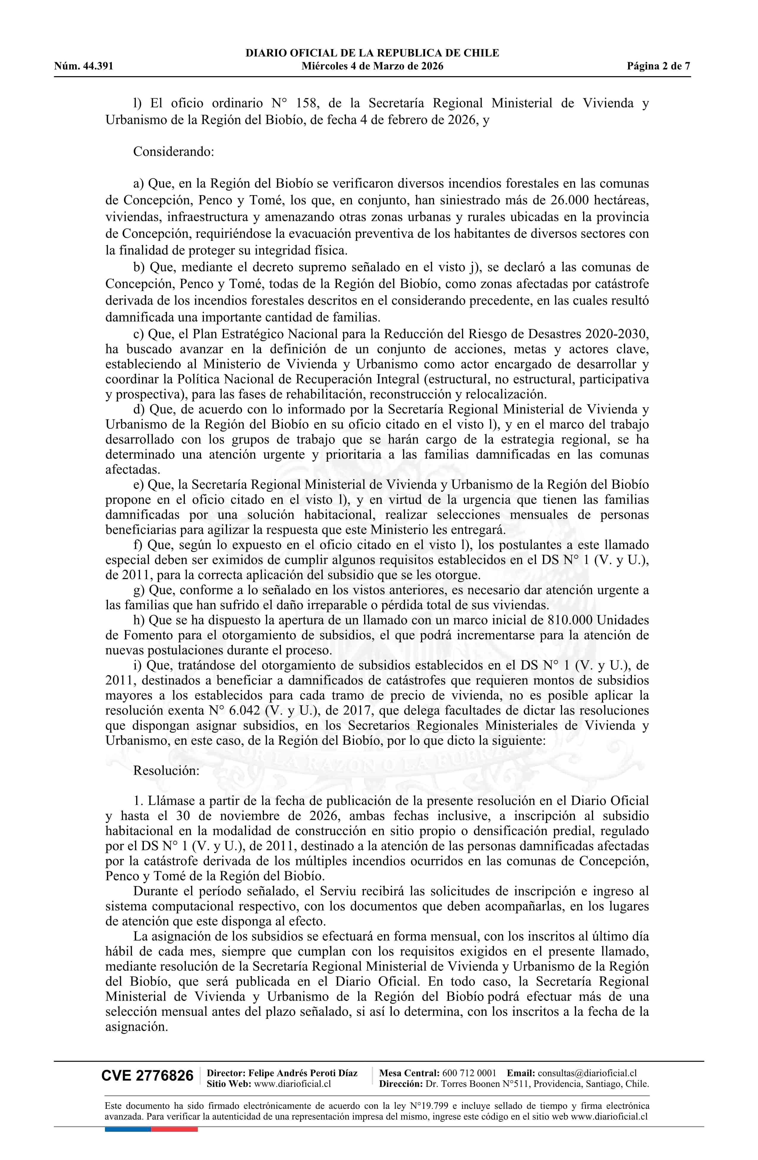 Título: Resolución exenta número 305, de 2026.- Llama a postulación en condiciones especiales para proyectos del Sistema de Subsidio Habitacional, tramo 2, conforme al artículo 13, inciso cuarto del decreto N° 1, de 2011, para personas damnificadas por incendio ocurrido en las comunas de Concepción, Penco y