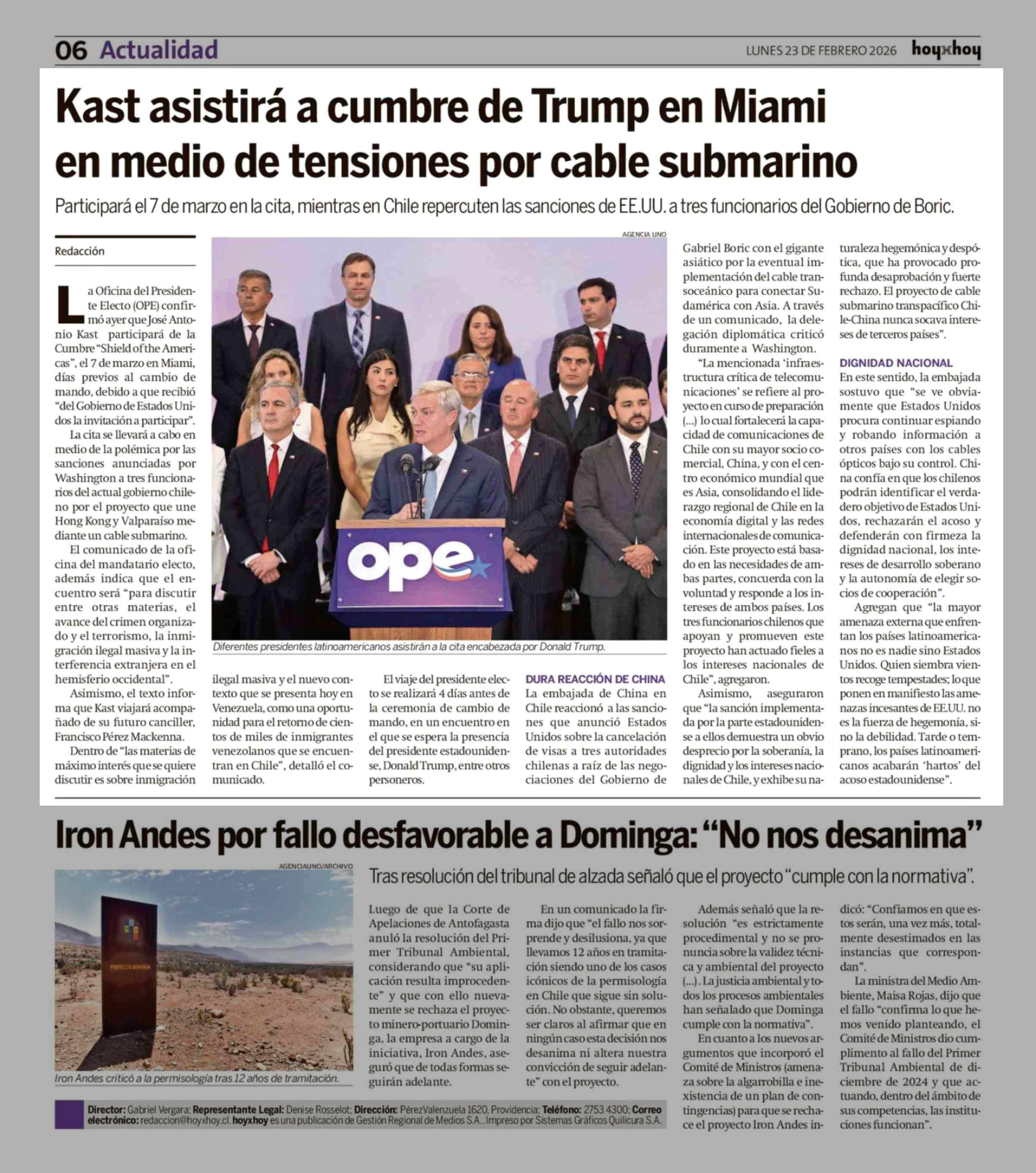 Título: Kast asistirá a cumbre de Trump en Miami en medio de tensiones por cable submarino