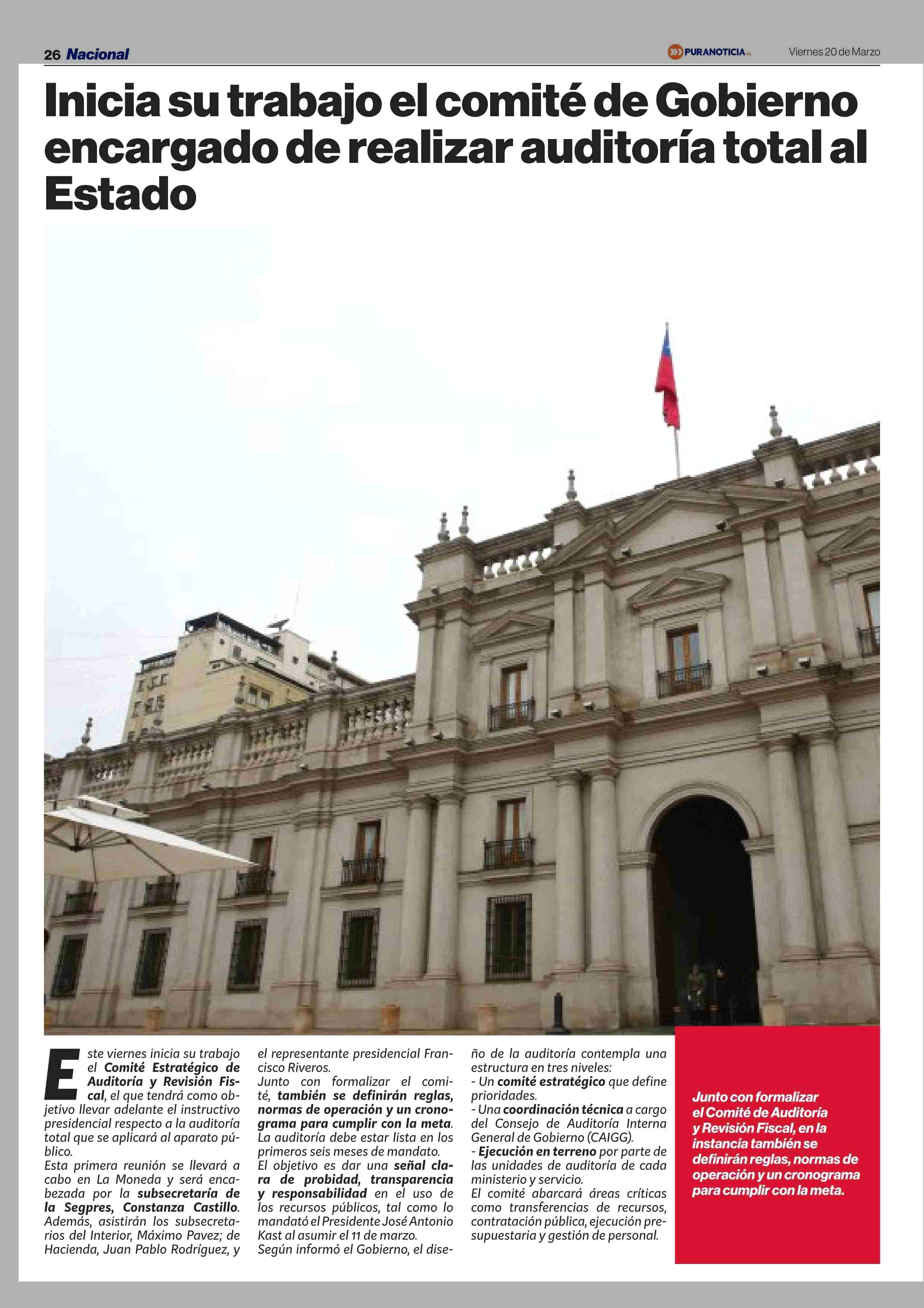 Inicia su trabajo el comité de Gobierno encargado de realizar auditoría total al Estado 20-03-2026 Puranoticia.cl |