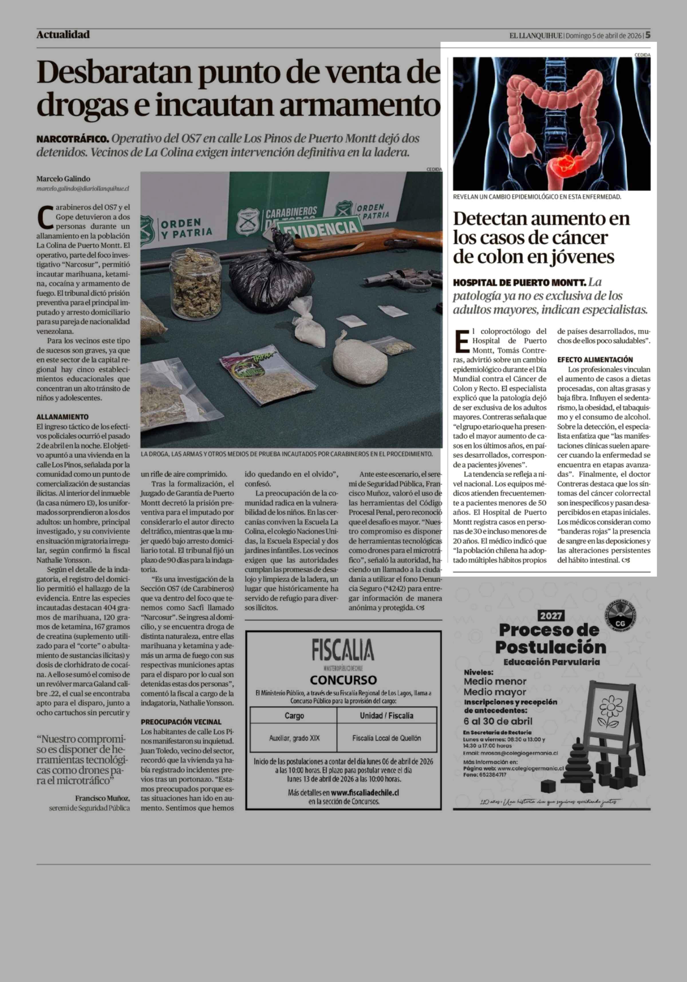 Detectan aumento en los casos de cáncer de colon en jóvenes 05-04-2026 El Llanquihue |