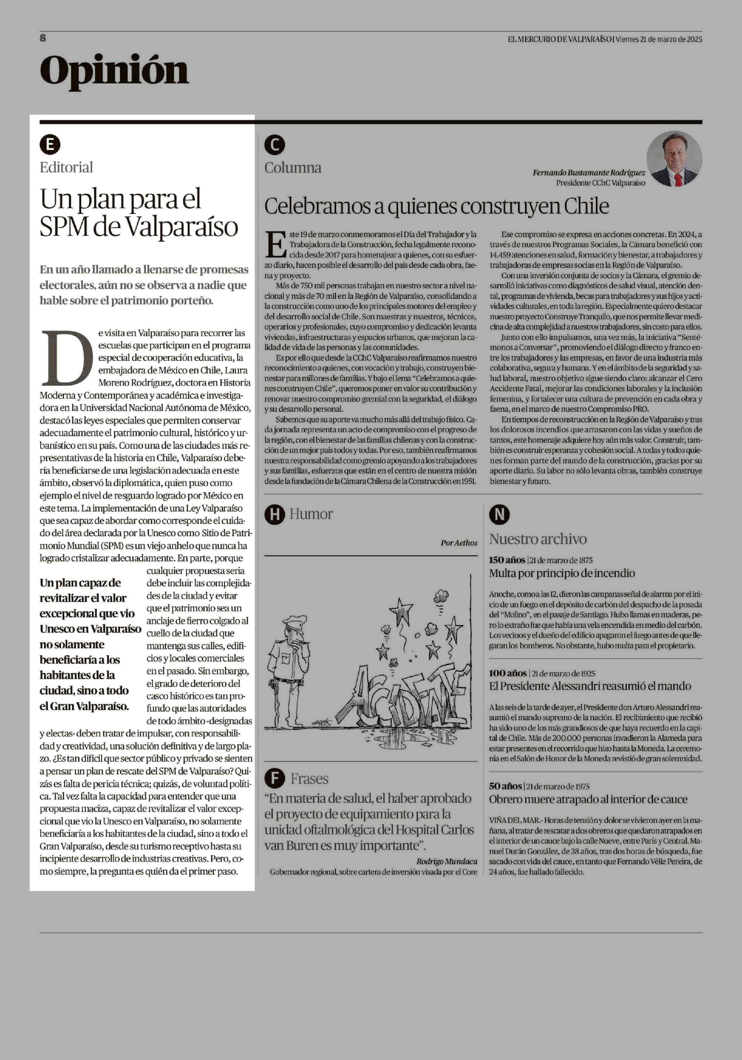 Un plan para el SPM de Valparaíso 21-03-2025 El Mercurio de Valparaíso |