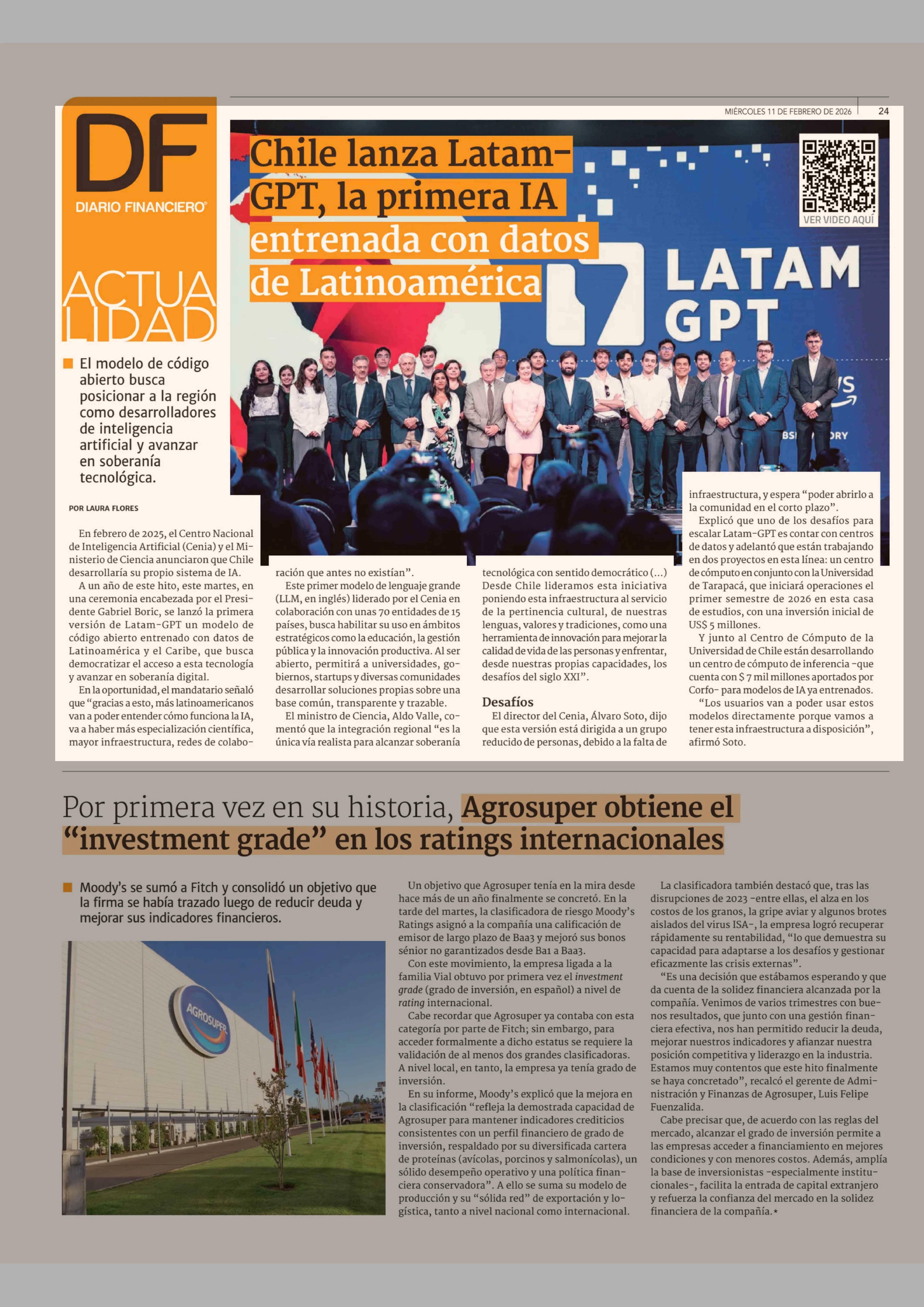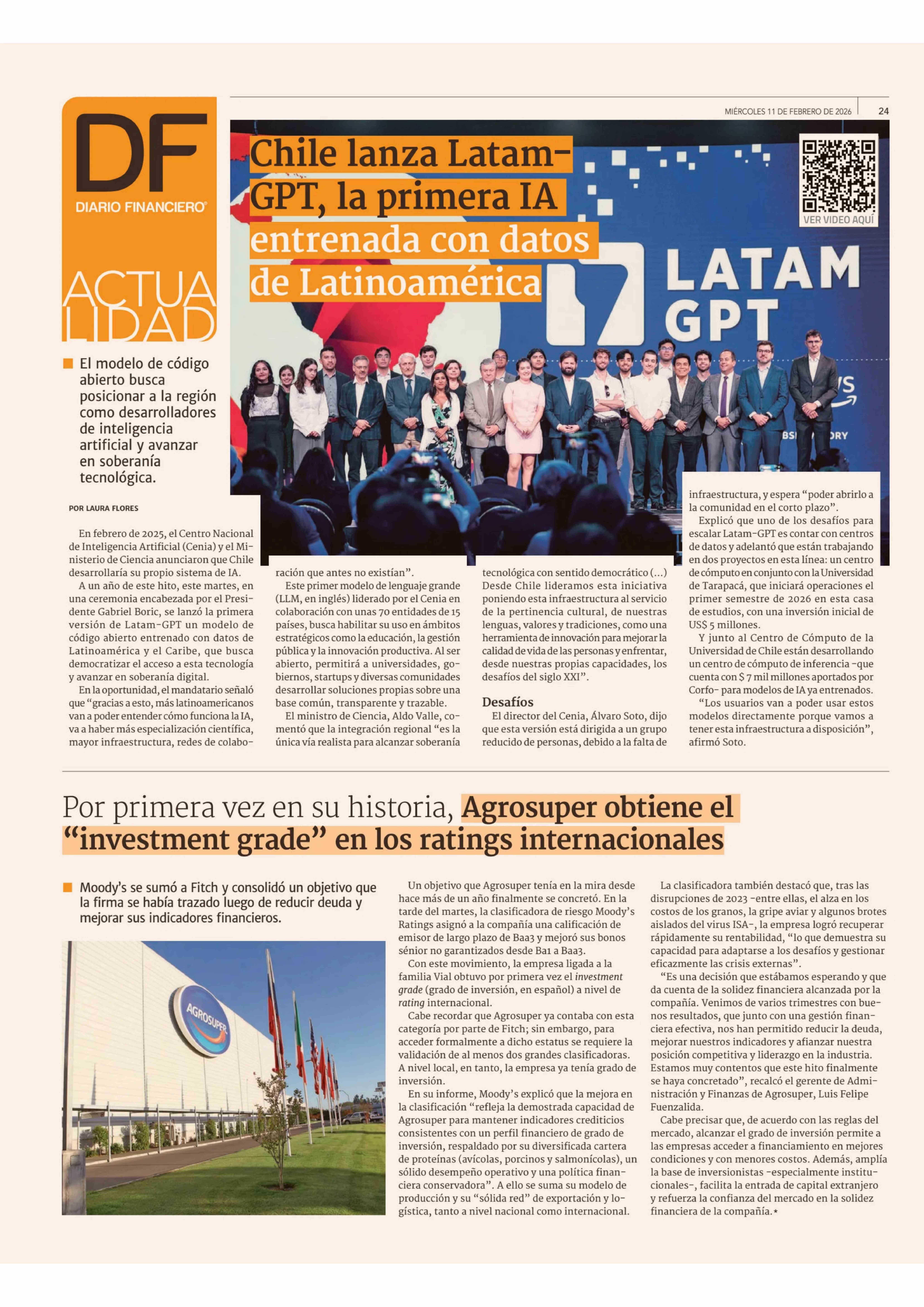 Chile lanza LatamGPT, la primera IA entrenada con datos de Latinoamérica 11-02-2026 Diario Financiero |