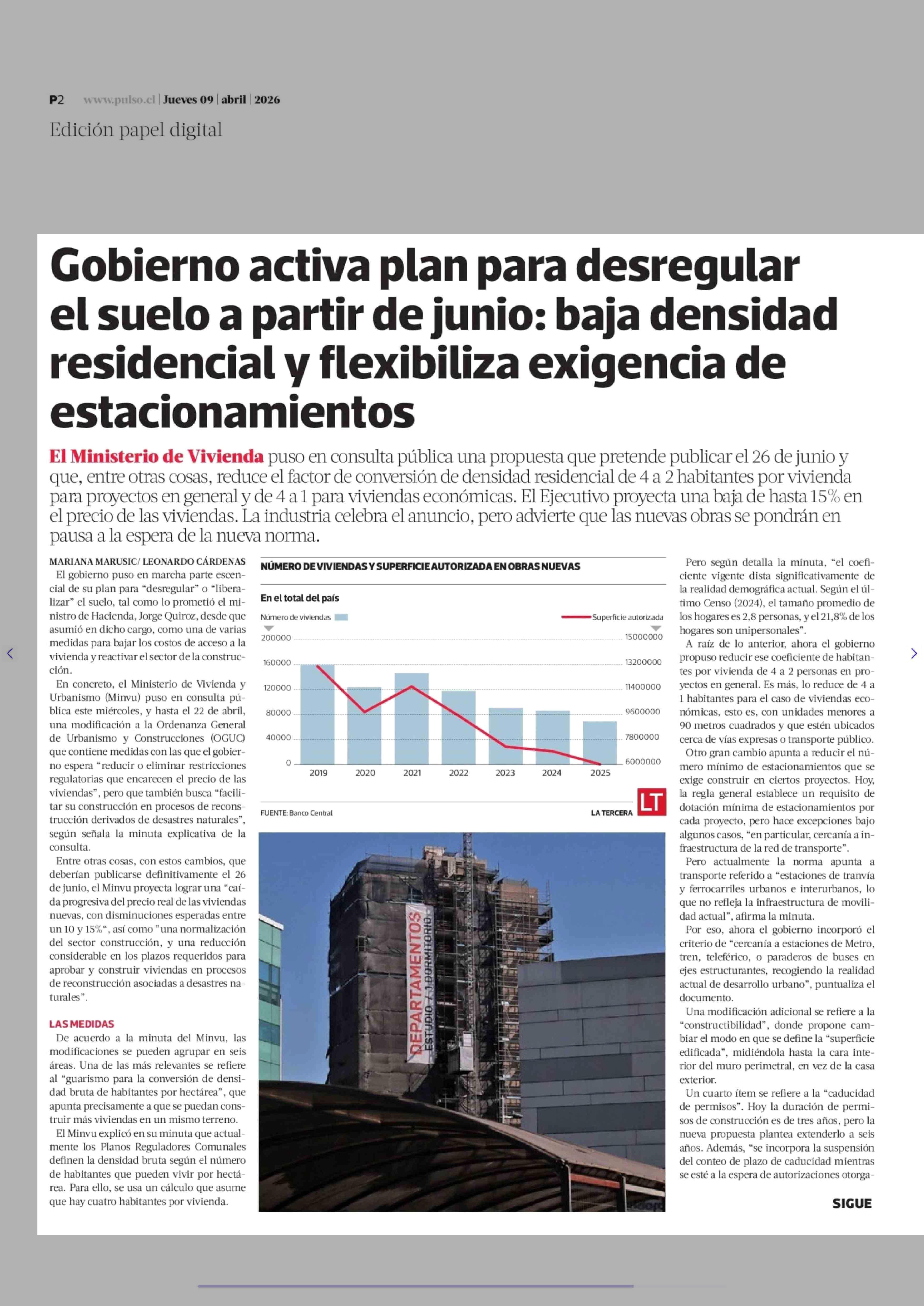 Título: Gobierno activa plan para desregular el suelo a partir de junio: baja densidad residencial y flexibiliza exigencia de estacionamientos