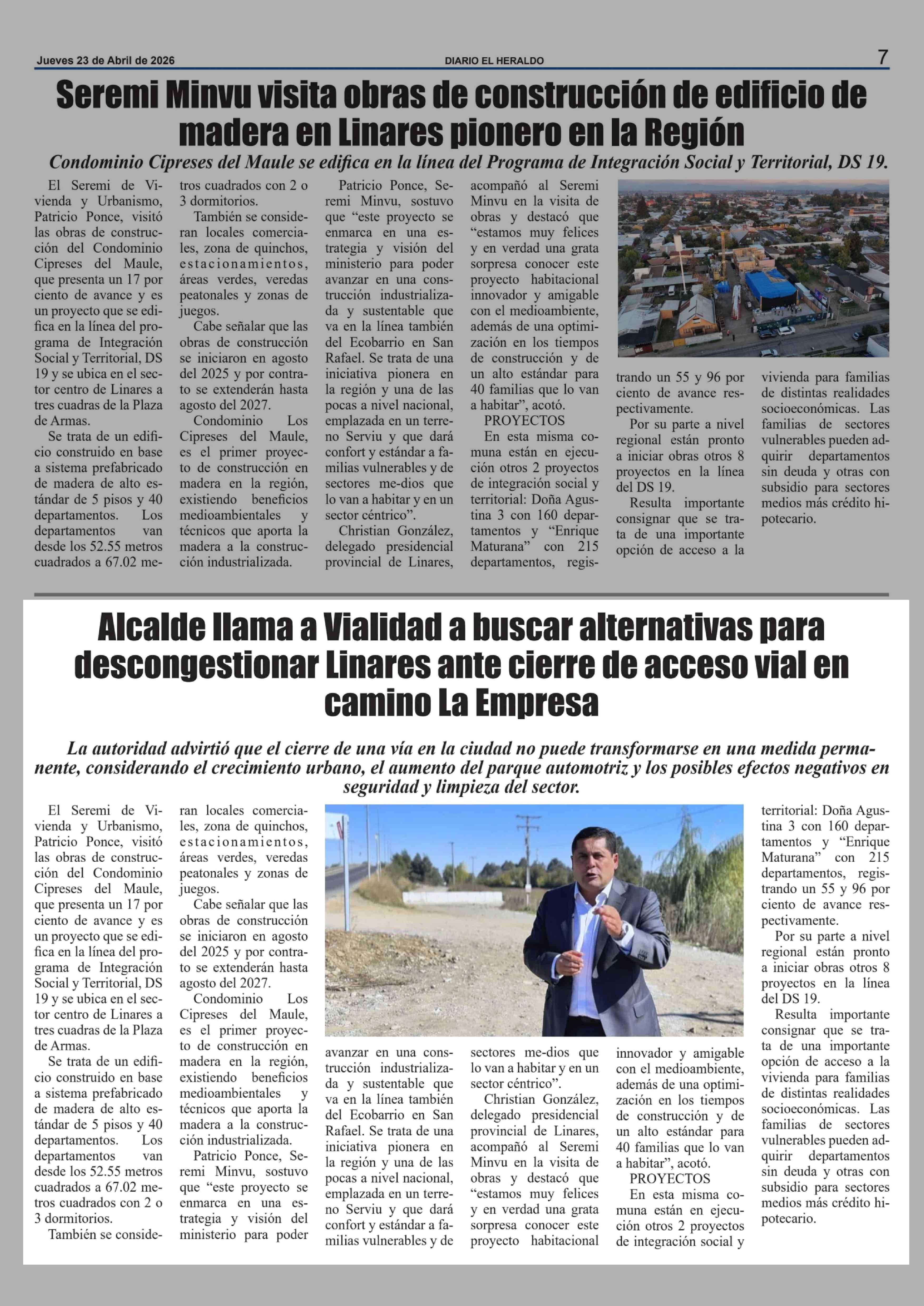 Alcalde llama a Vialidad a buscar alternativas para descongestionar Linares ante cierre de acceso vial en camino La Empresa 23-04-2026 El Heraldo |