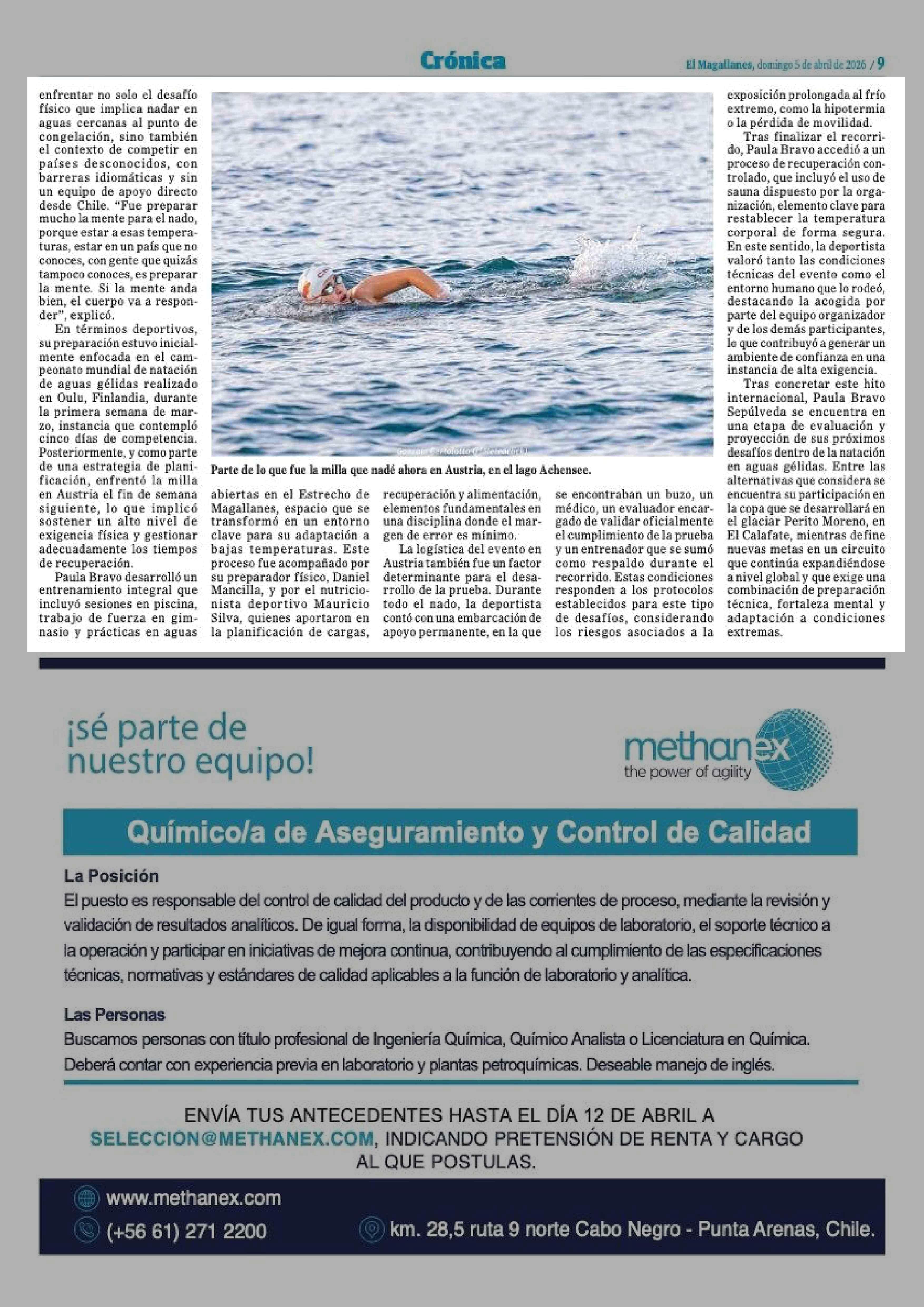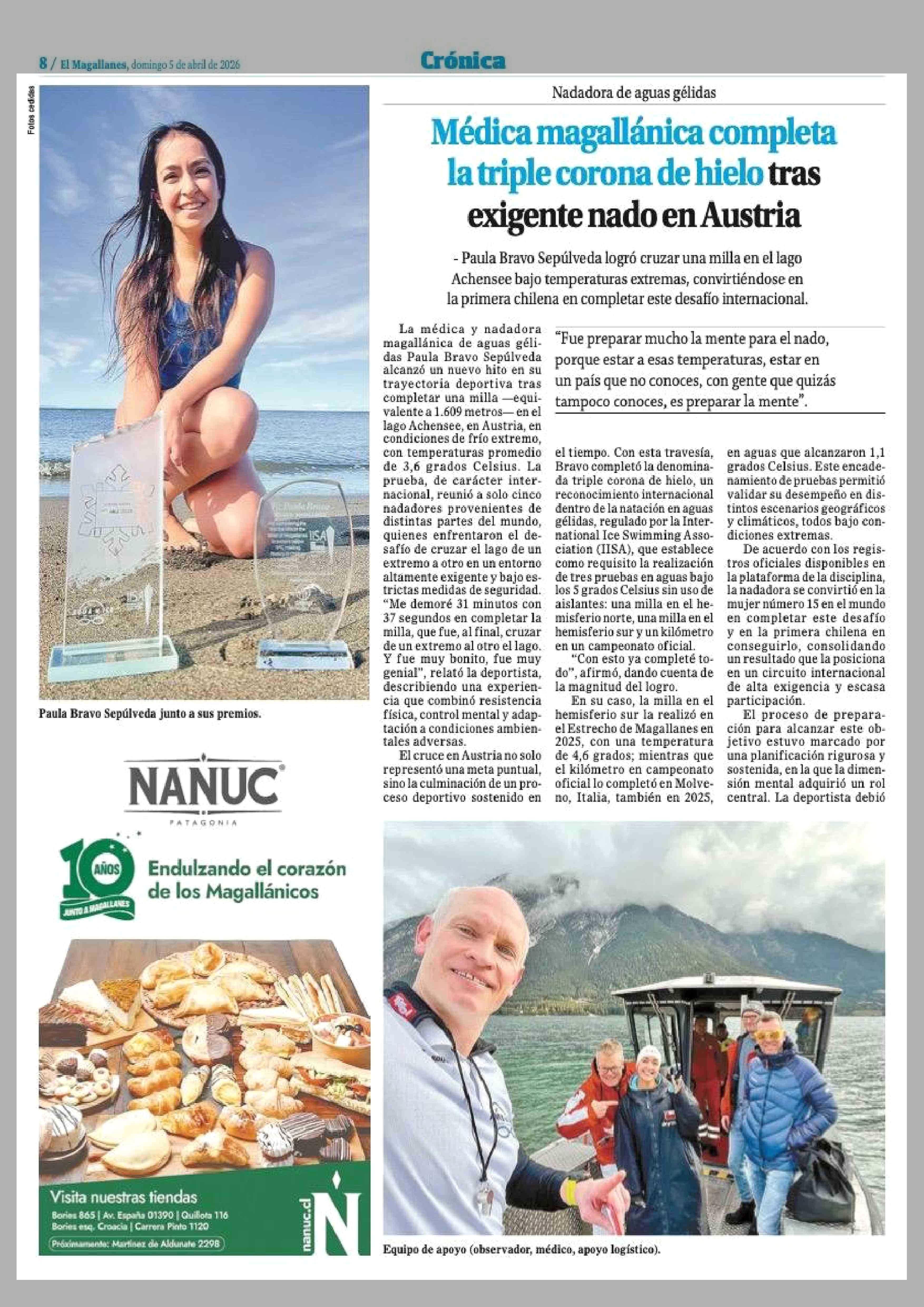 Título: Médica magallánica completa la triple corona de hielo tras exigente nado en Austria