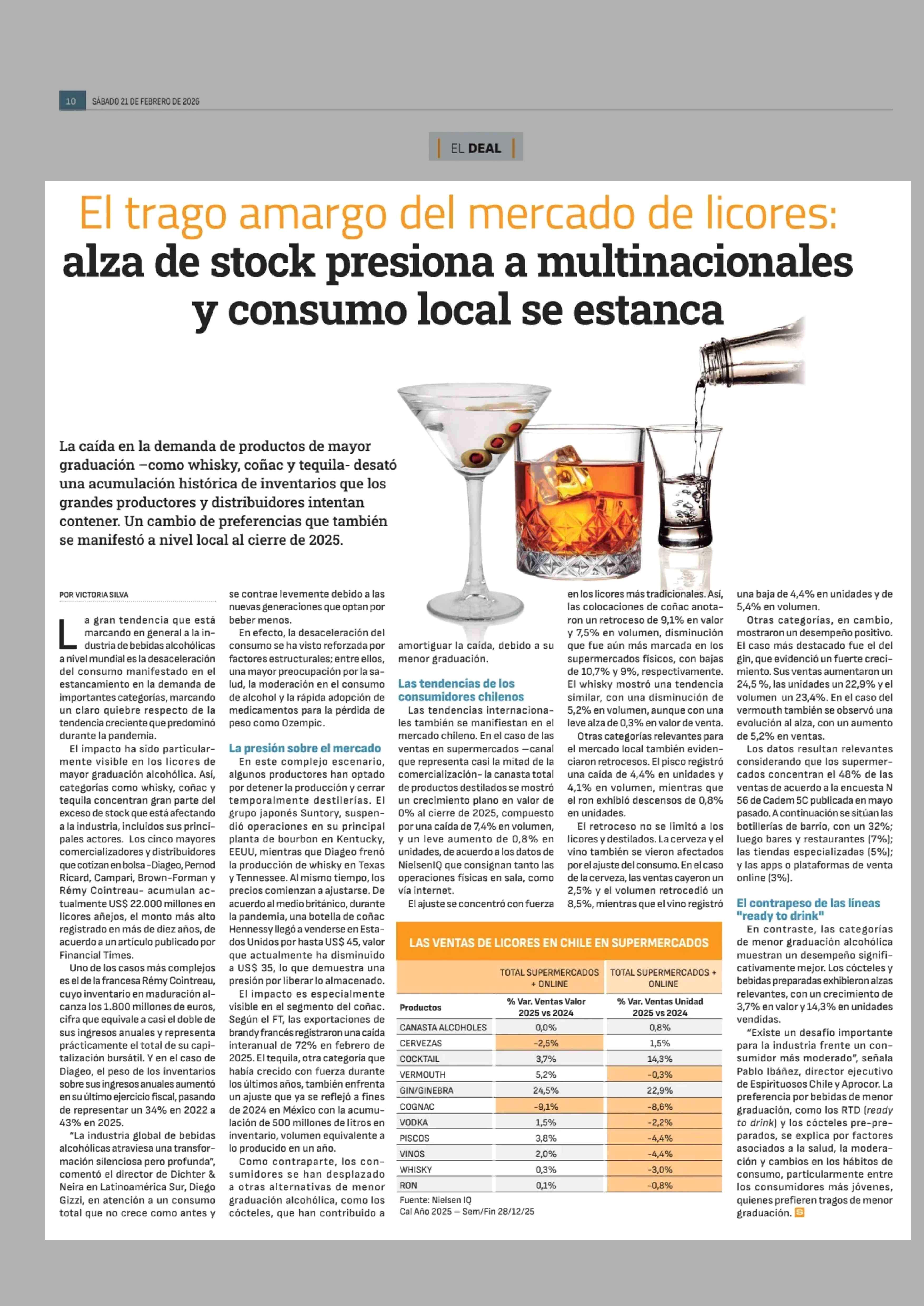 Título: El trago amargo del mercado de licores: alza de stock presiona a multinacionales y consumo local se estanca