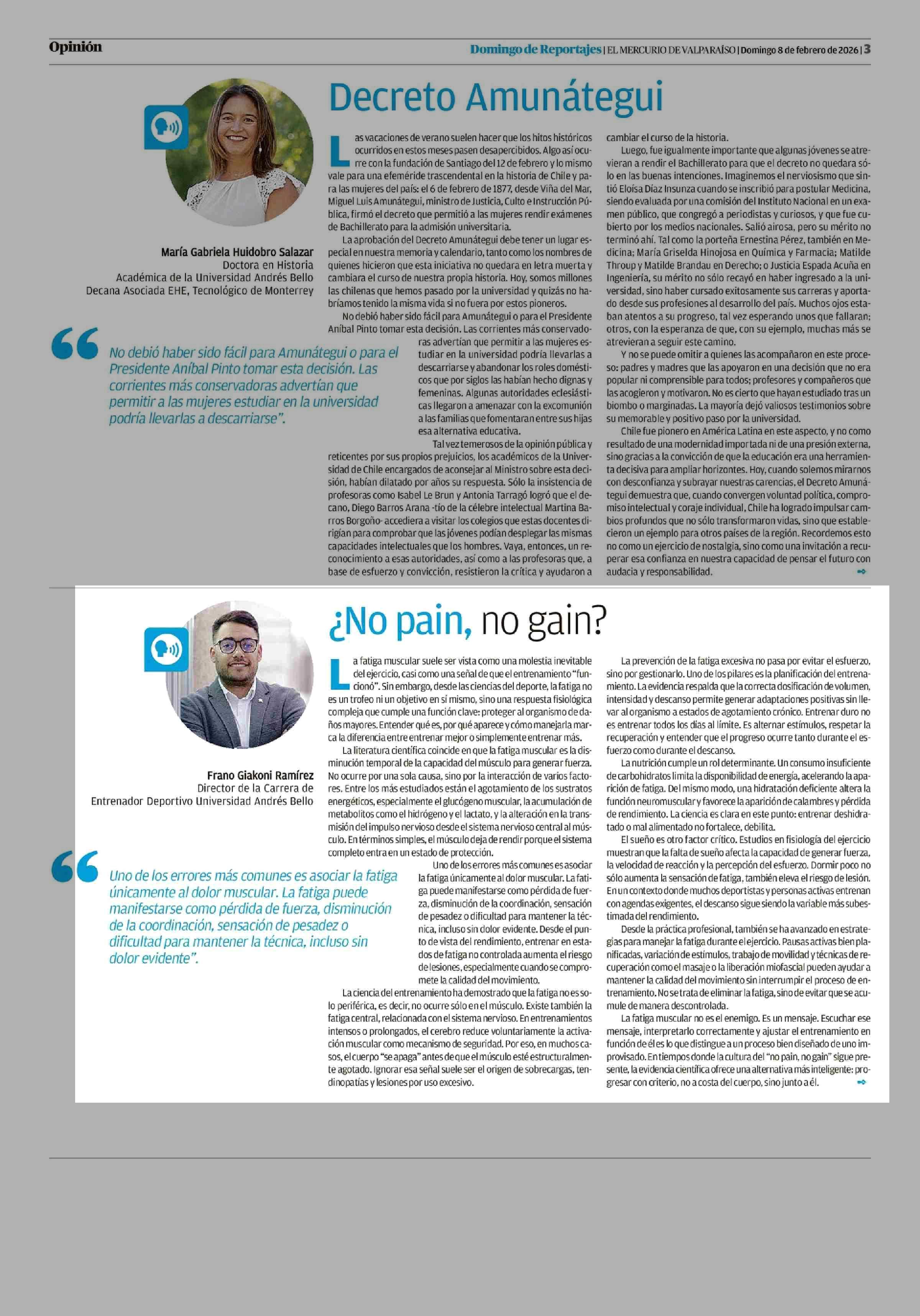 Columnas de Opinión: ¿No pain, no gain? 08-02-2026 El Mercurio de Valparaíso |