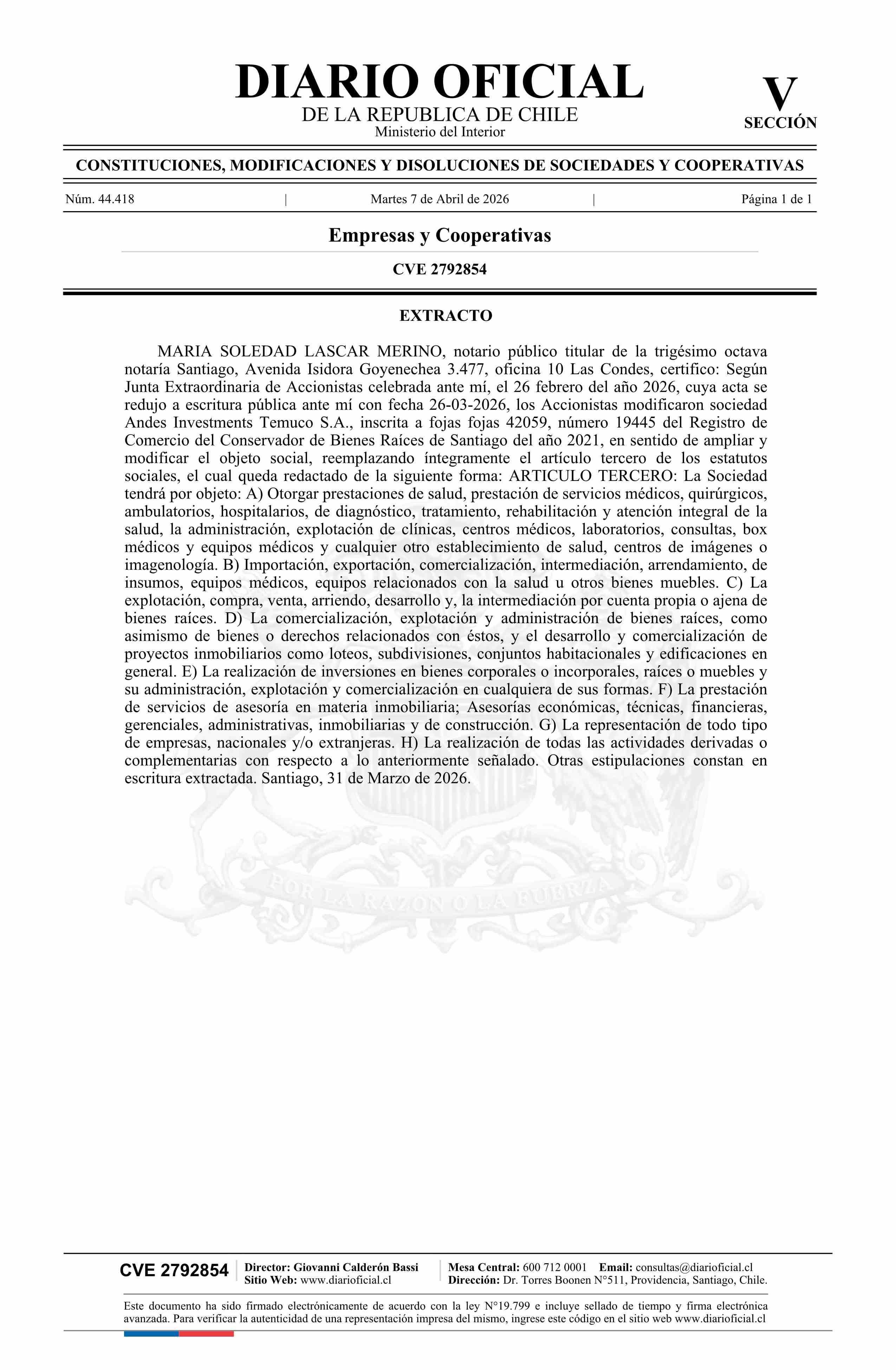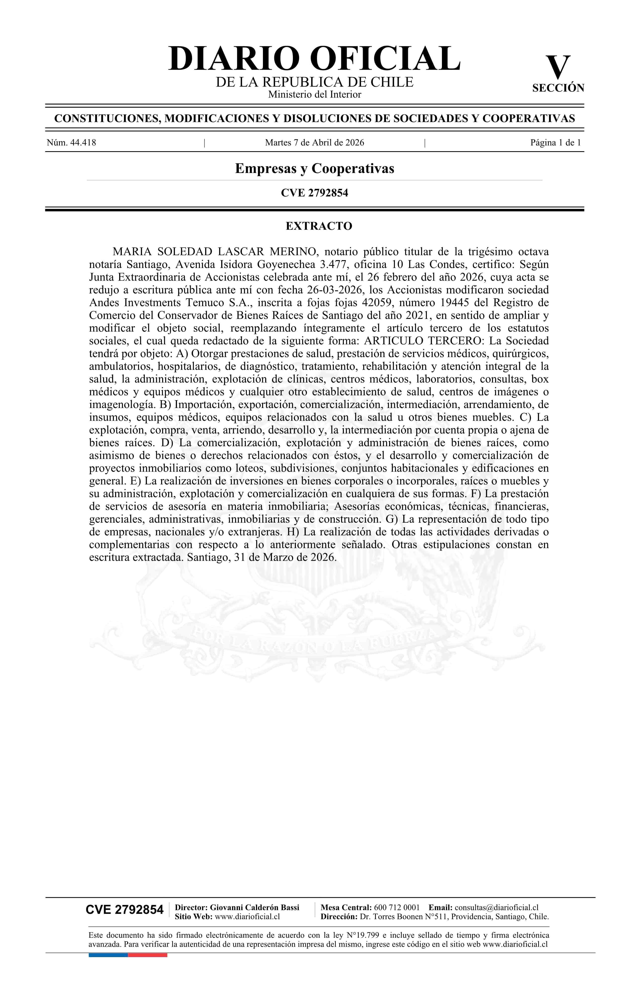 Andes Investments Temuco S.A. 77.383.756-2* 07-04-2026 Diario Oficial Edición Electrónica |