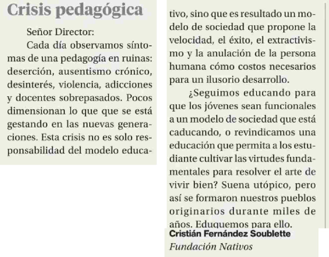 | Título: | CARTAS: Crisis pedagógica |
