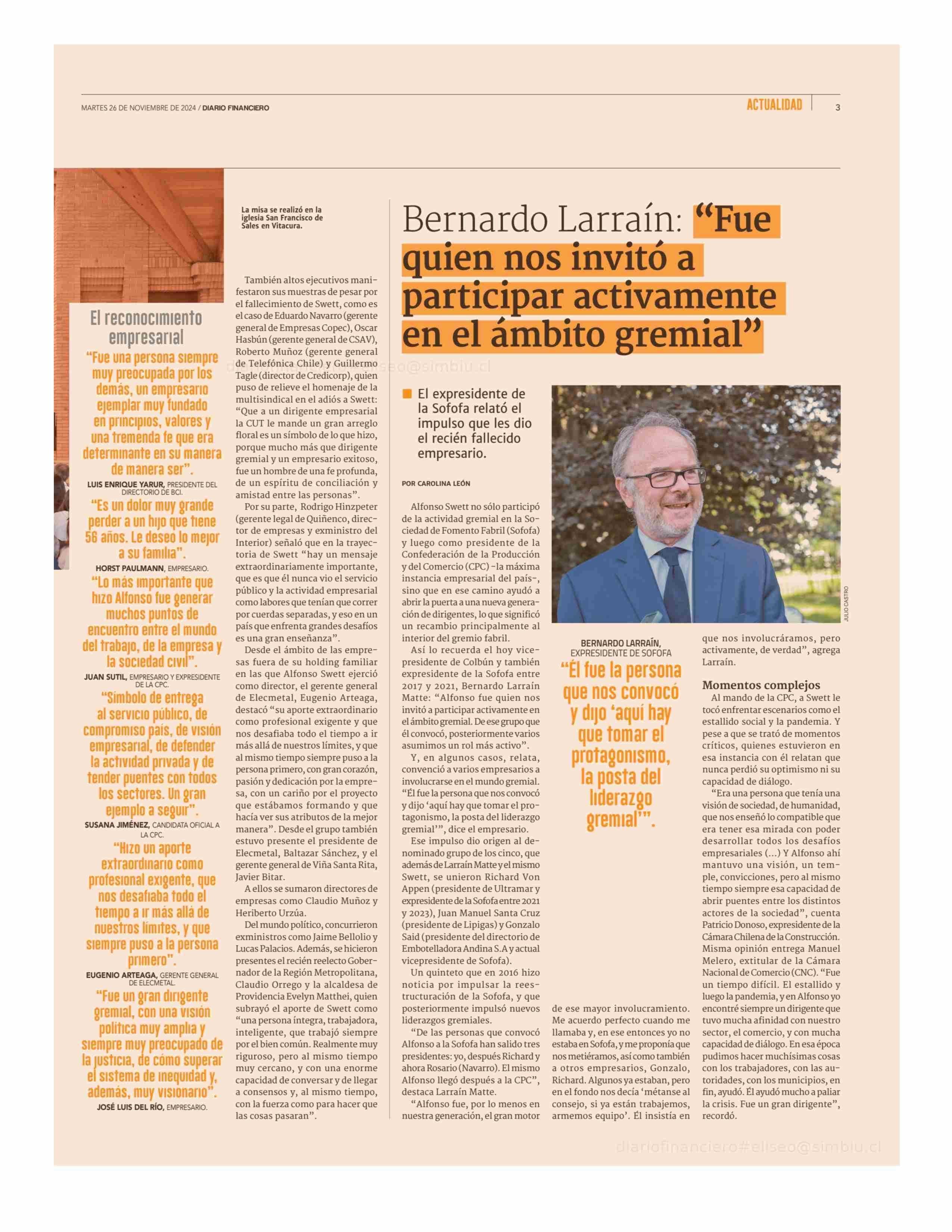 El masivo homenaje y último adios a Alfonso Swett Opazo 26-11-2024 Diario Financiero |