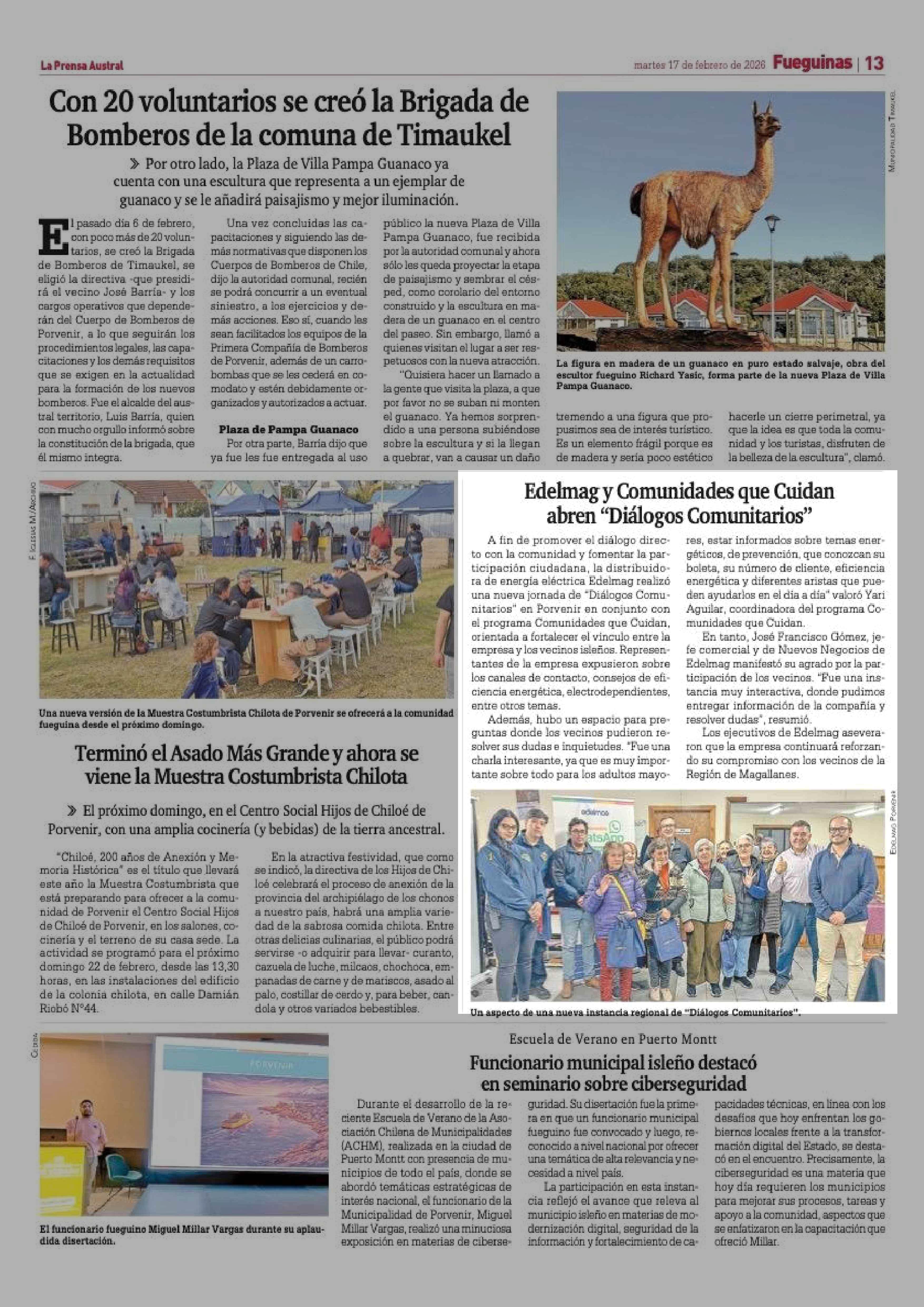 Edelmag y Comunidades que Cuidan abren "Diálogos Comunitarios" 17-02-2026 La Prensa Austral |