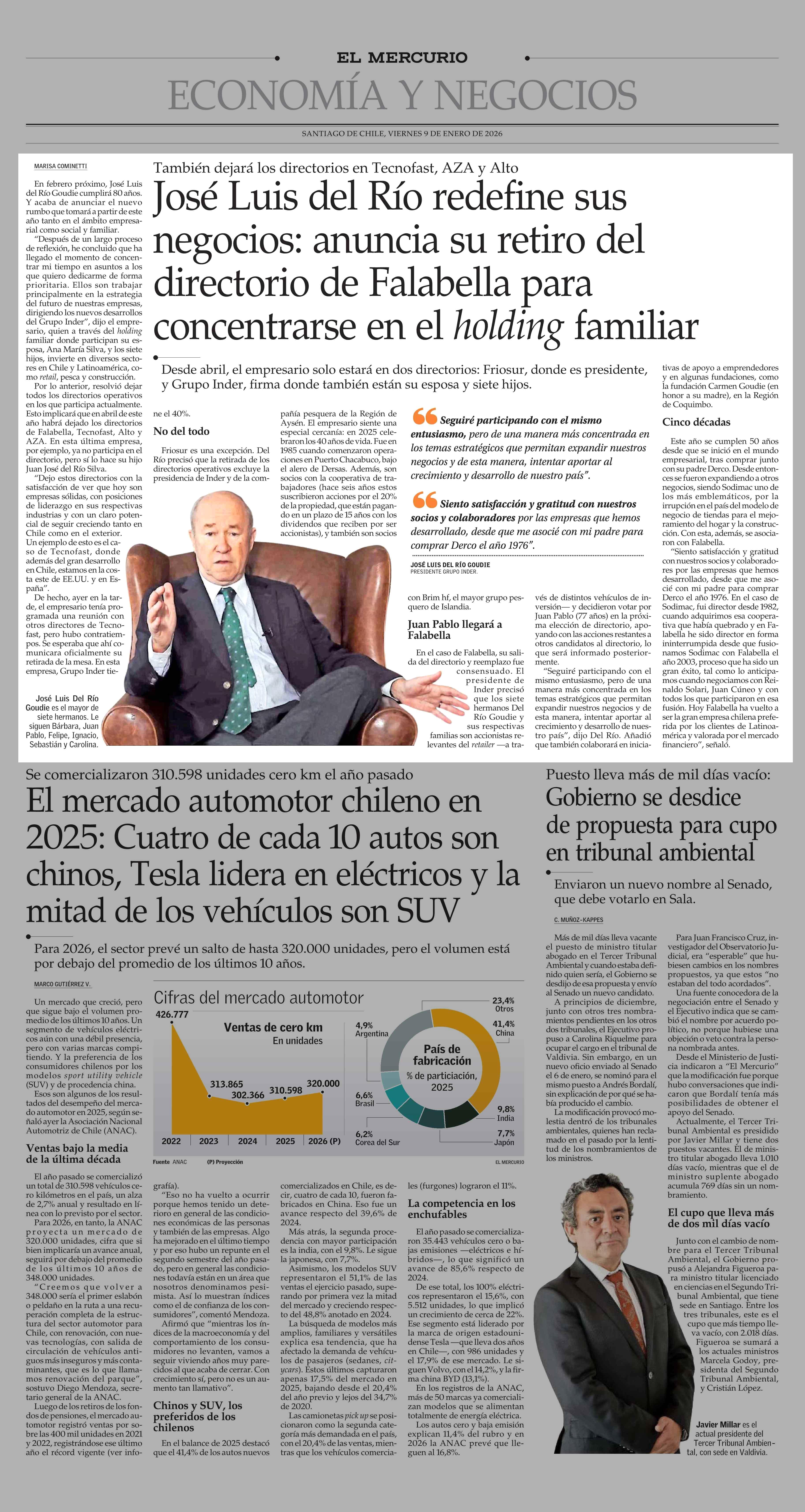 José Luis del Río redefine sus negocios: anuncia su retiro del directorio de Falabella para concentrarse en el holding familiar 09-01-2026 El Mercurio |