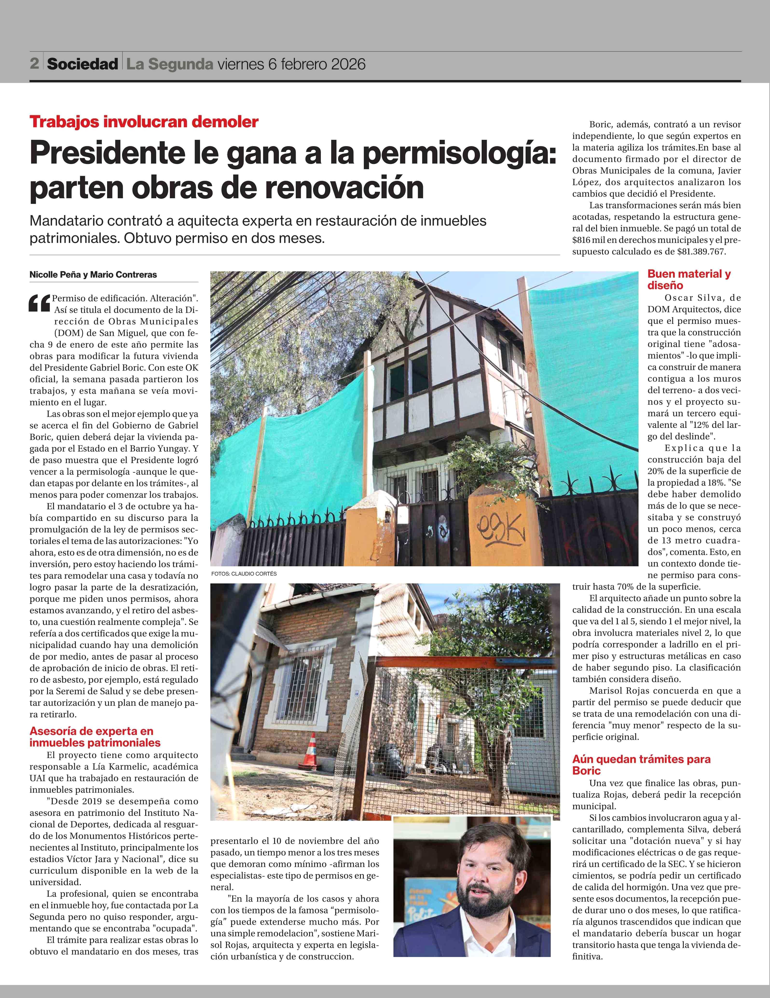 Presidente le gana a la permisología: parten obras de renovación 06-02-2026 La Segunda |
