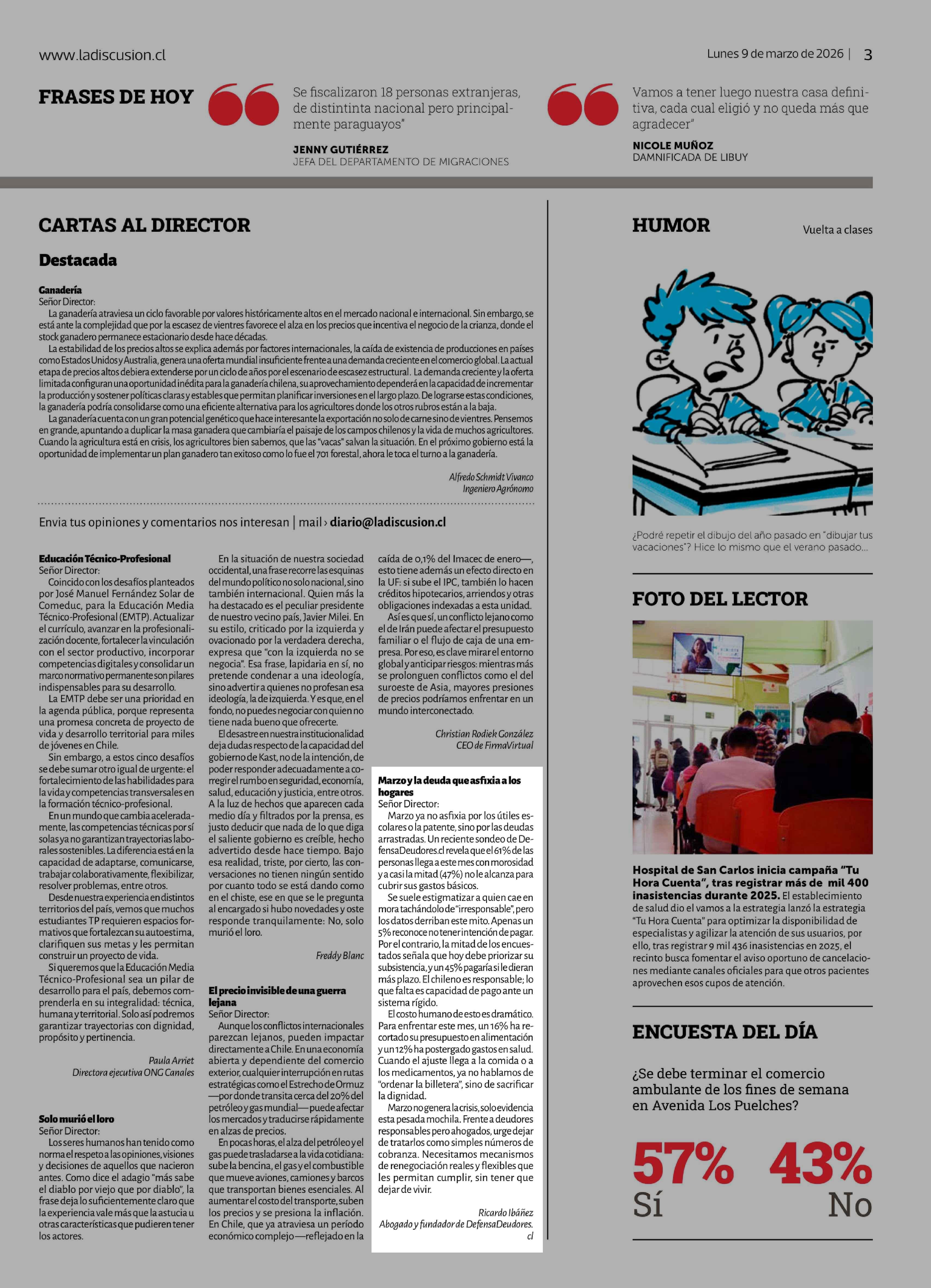CARTAS: Marzo y la deuda que asfixia a los hogares 09-03-2026 La Discusión |
