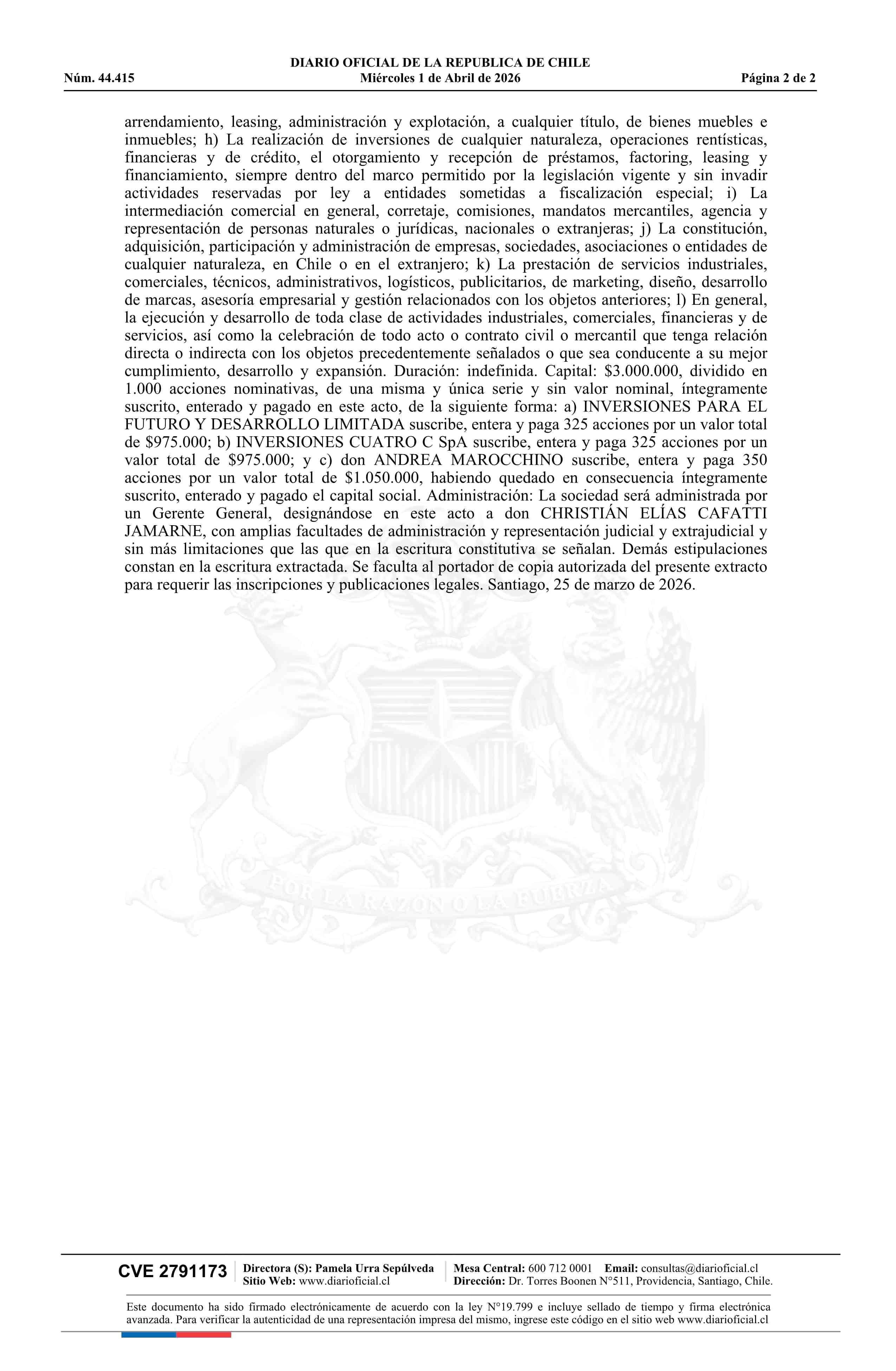 TAORMINA SpA 01-04-2026 Diario Oficial Edición Electrónica |