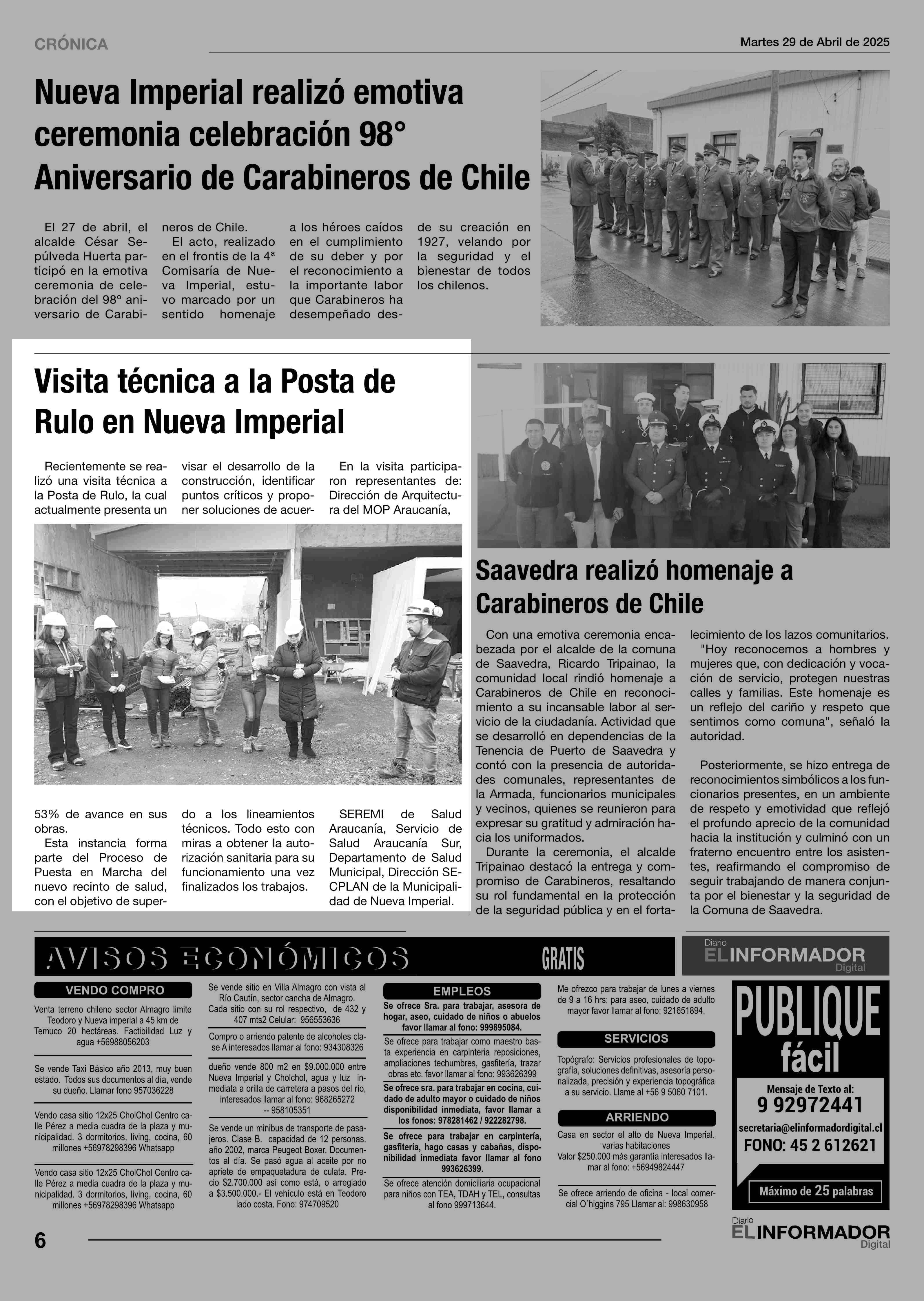 | Fecha: | 29-04-2025 | Sector: | Noticia general | Región: | Región de la Araucanía |