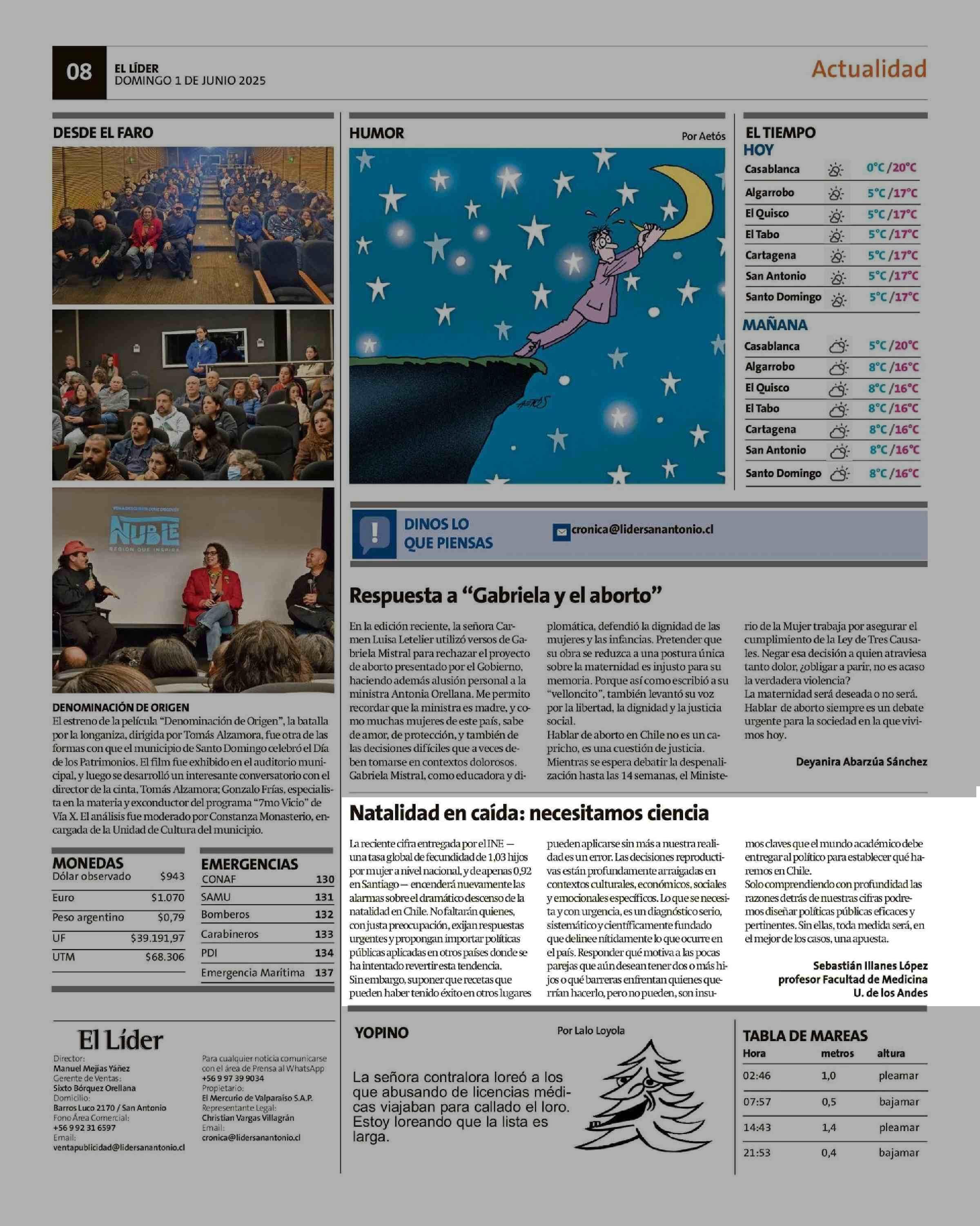 CARTAS: Natalidad en caída: necesitamos ciencia 01-06-2025 El Líder |