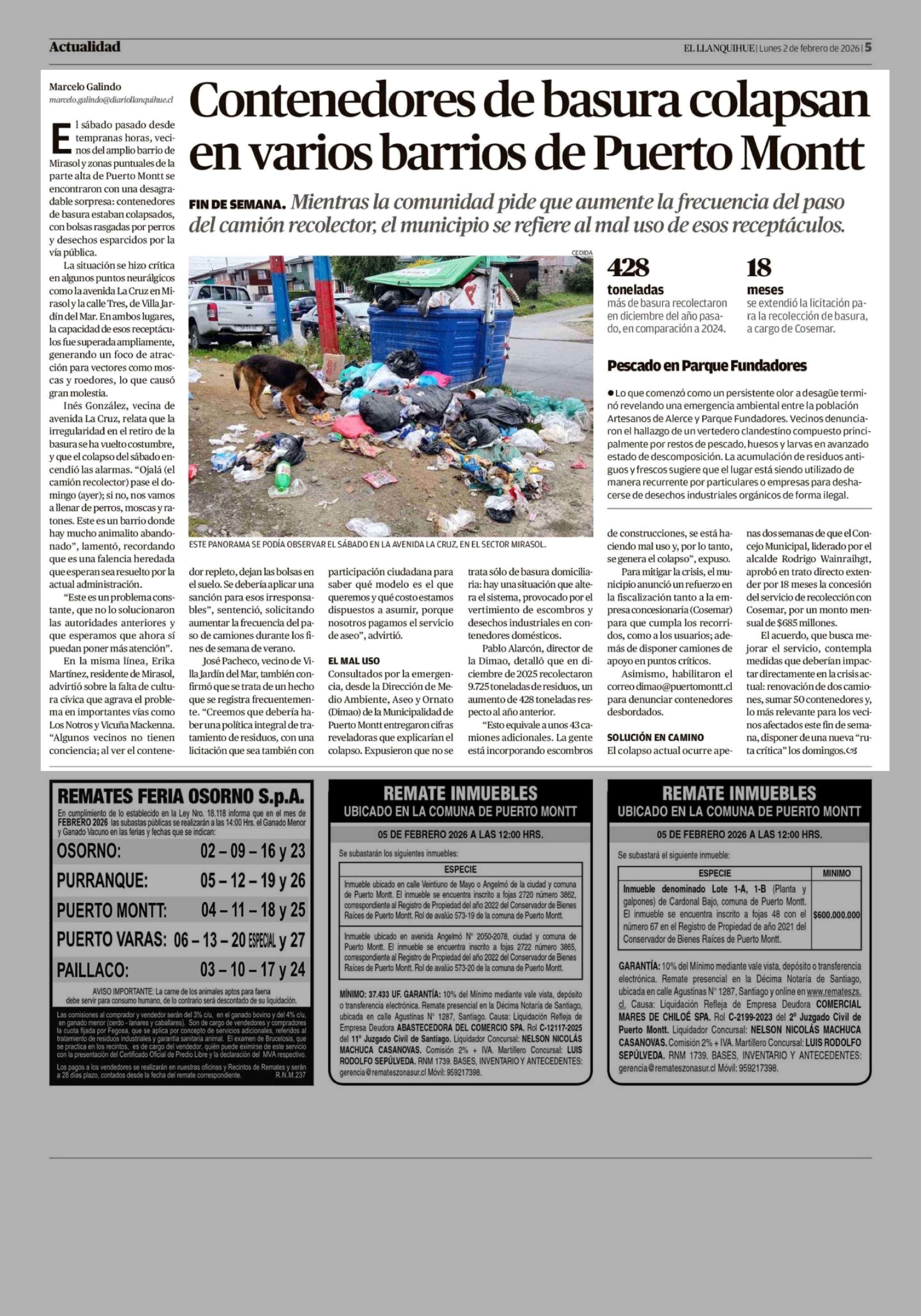 Contenedores de basura colapsan en varios barrios de Puerto Montt 02-02-2026 El Llanquihue |