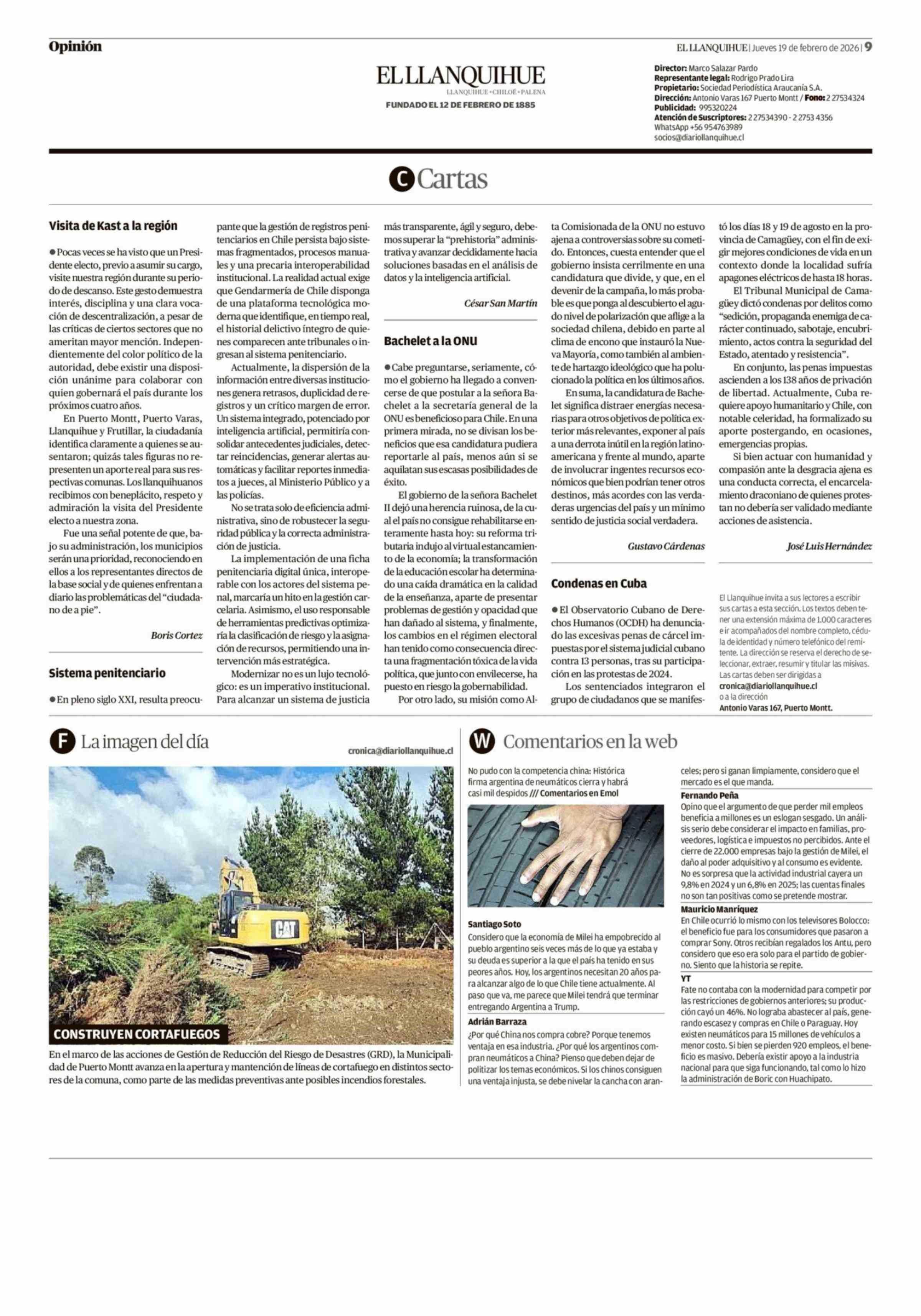 Cartas: Bachelet a la ONU 19-02-2026 El Llanquihue |