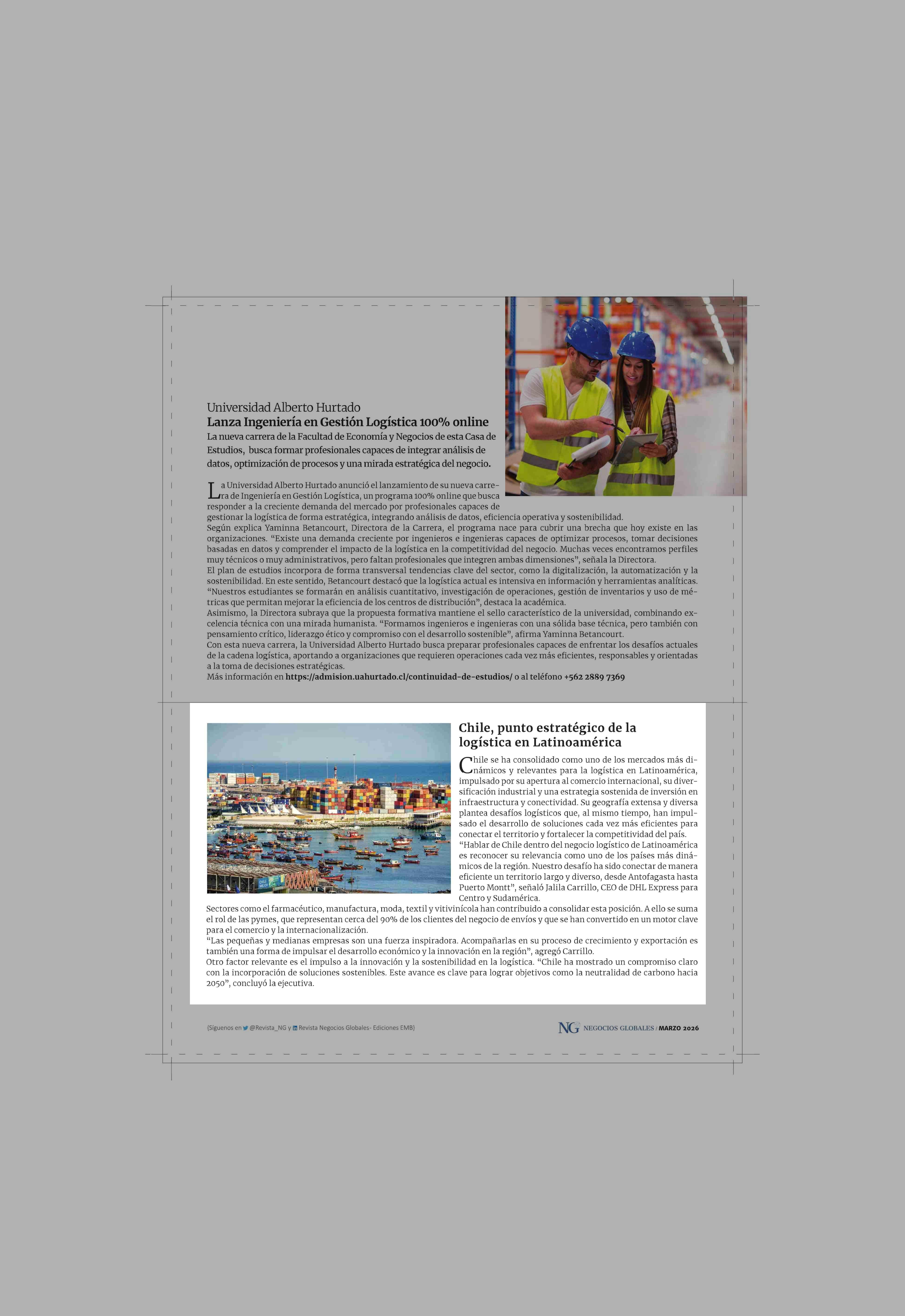 Chile, punto estratégico de la logística en Latinoamérica 24-03-2026 Revista NG |