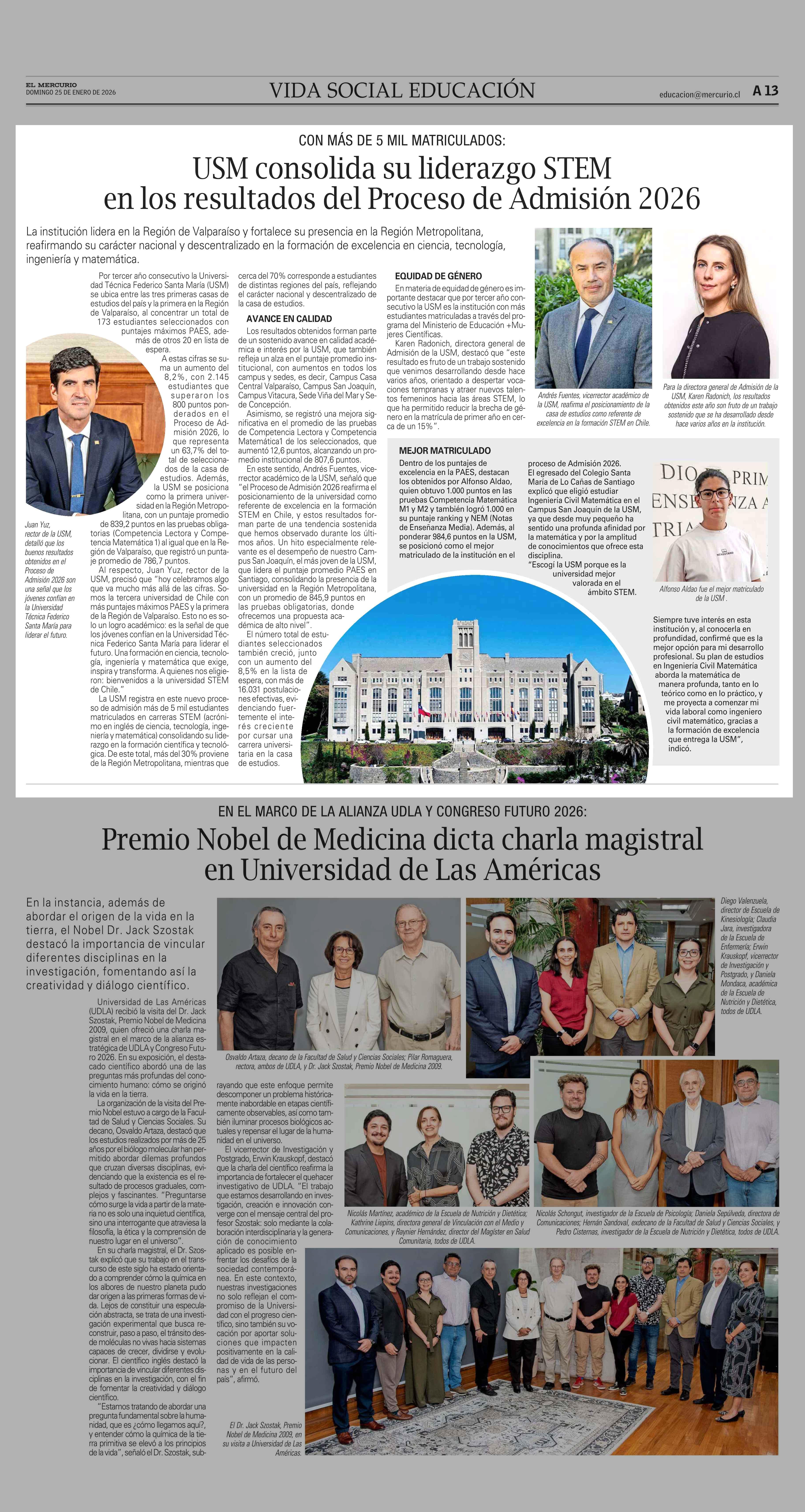 Título: USM consolida su liderazgo STEM en los resultados del Proceso de Admisión 2026