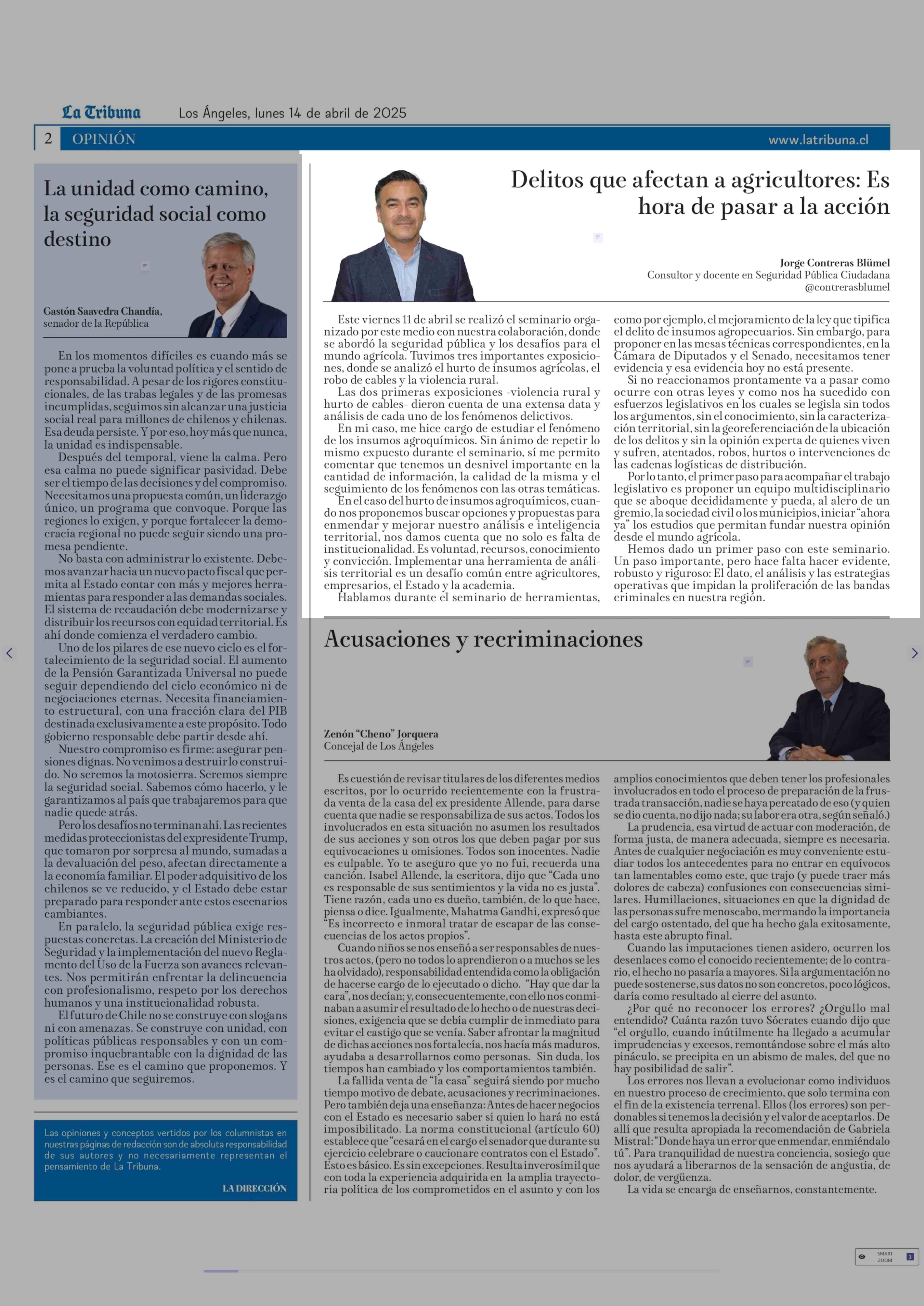 Delitos que afectan a agricultores: Es hora de pasar a la acción 14-04-2025 La Tribuna |