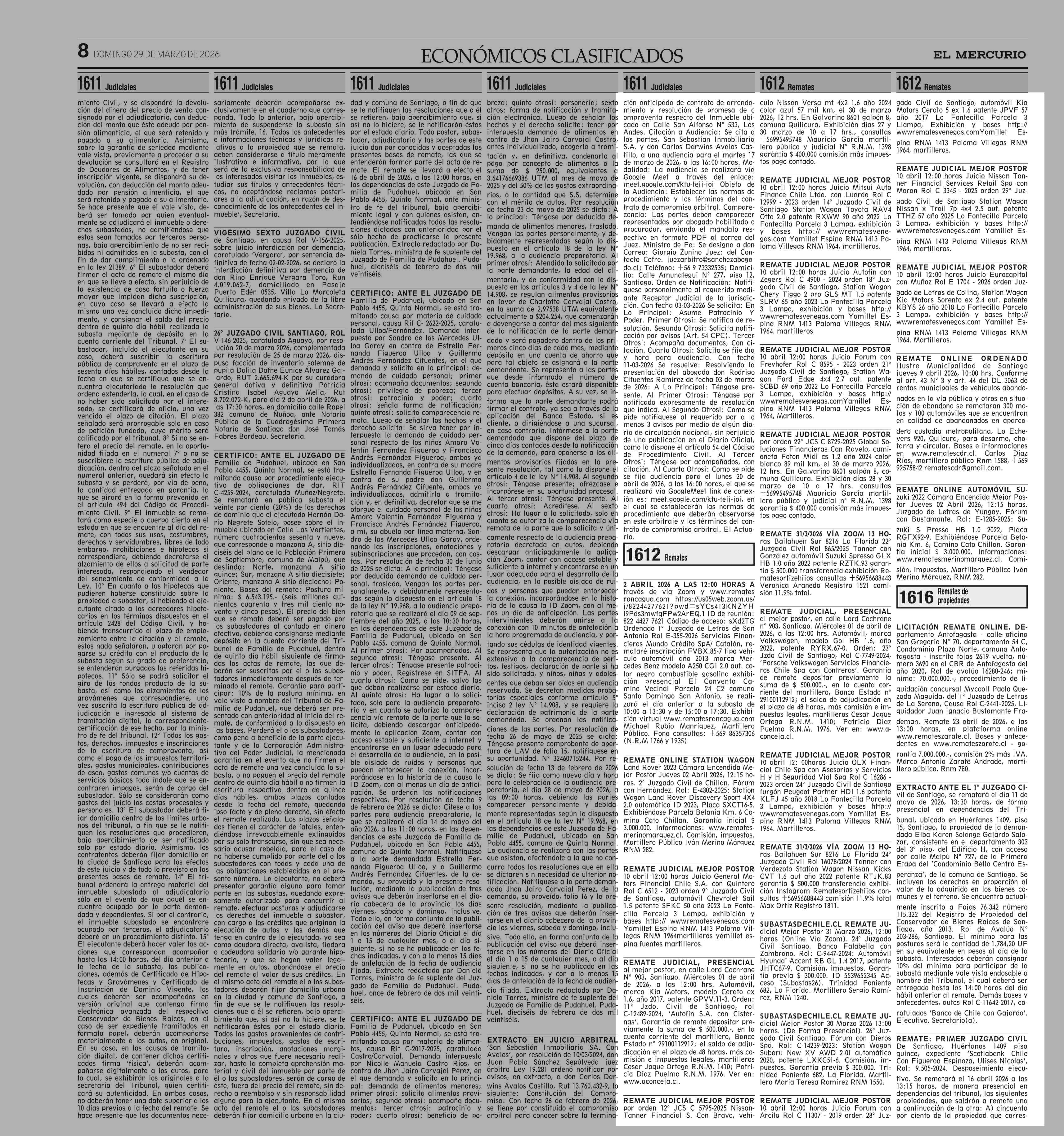 | Fecha: | 29-03-2026 | Sector: | Remates | Región: | Región Metropolitana de Santiago |