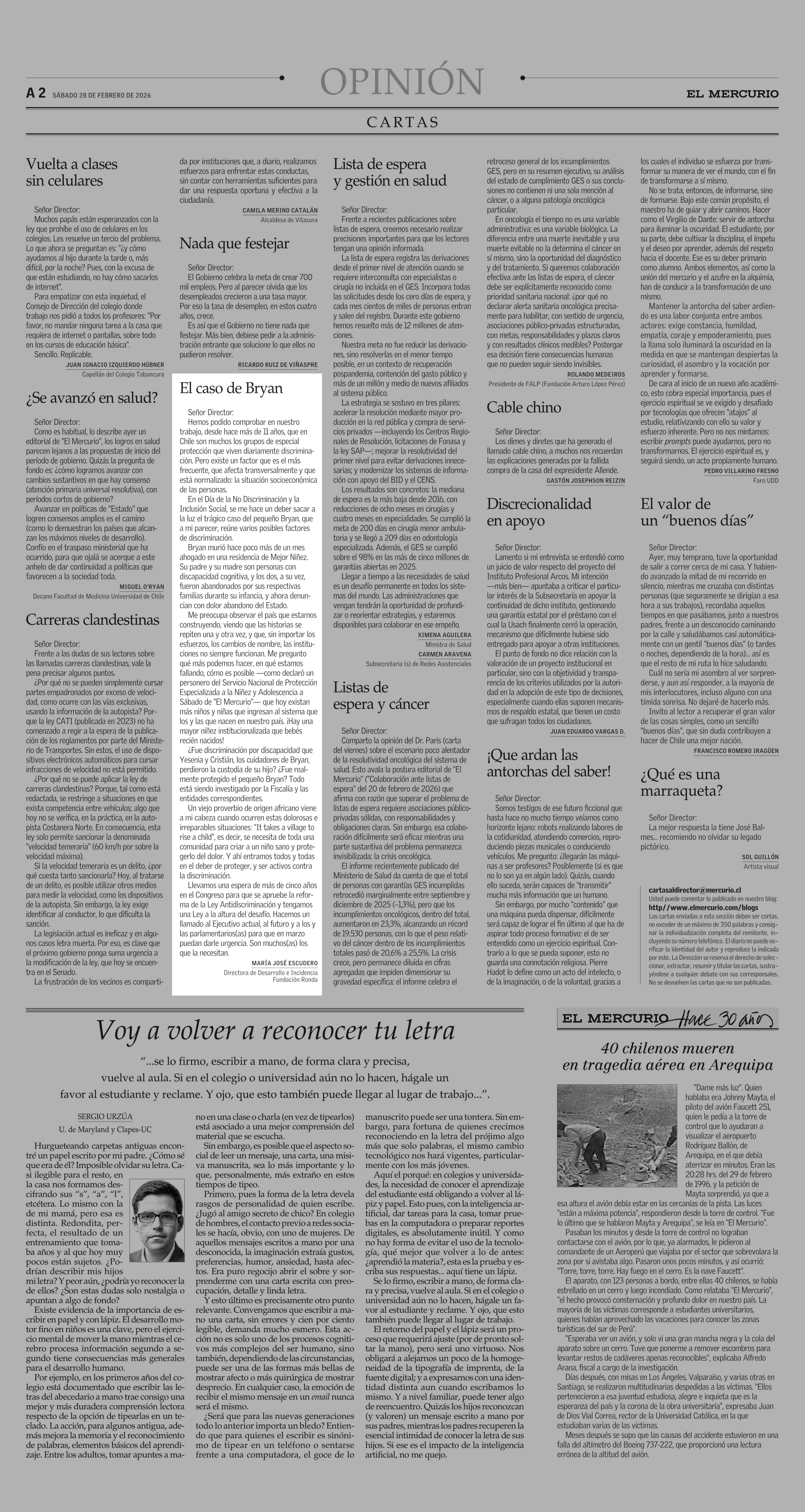 Cartas: El caso de Bryan 28-02-2026 El Mercurio |