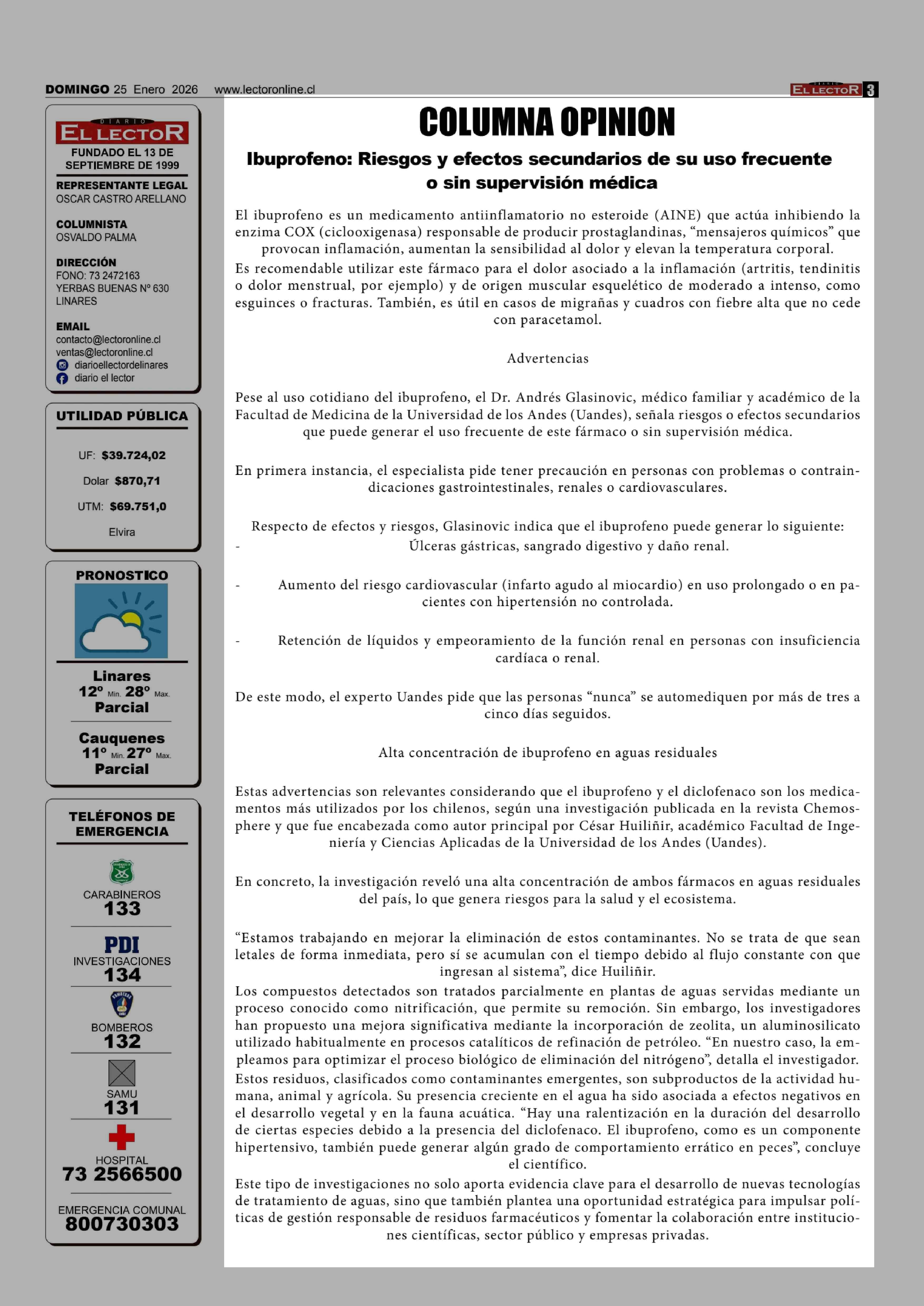 Título: Columnas de Opinión: Ibuprofeno: Riesgos y efectos secundarios de su uso frecuente o sin supervisión médica