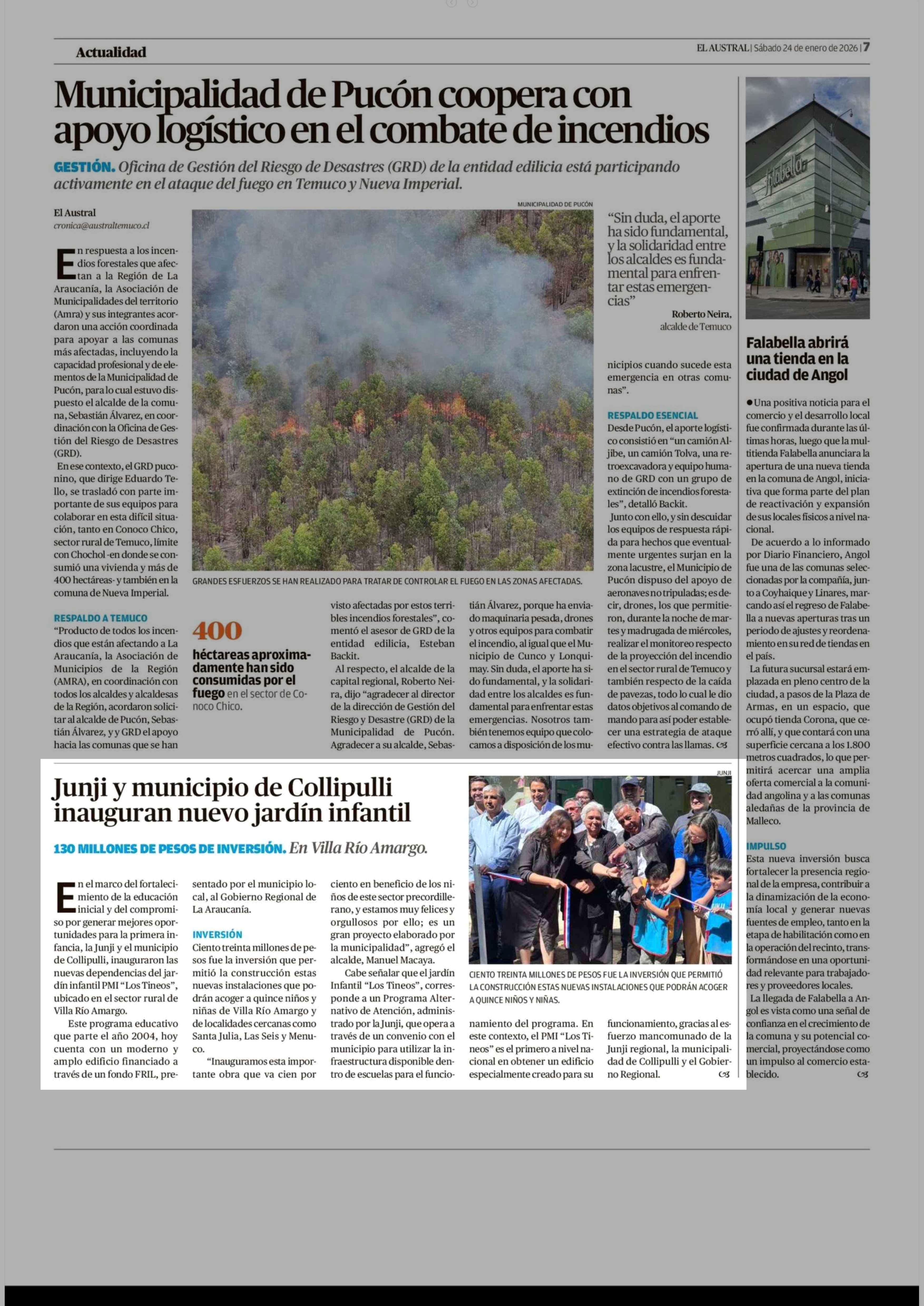 Fecha: 24-01-2026 Sector: Noticia general Región: Región de la Araucanía
