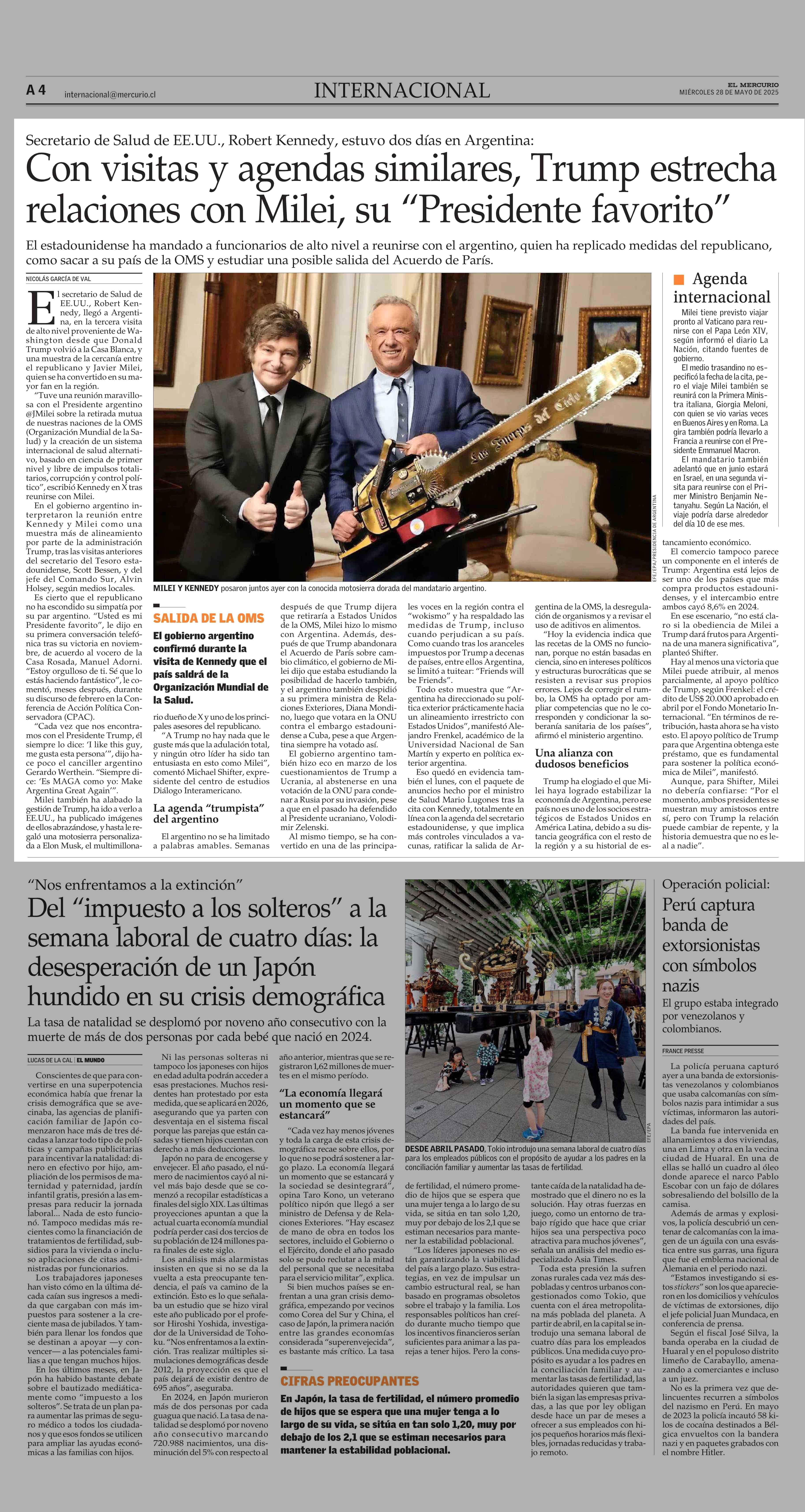 Con visitas y agendas similares, Trump estrecha relaciones con Milei, su "Presidente favorito" 28-05-2025 El Mercurio |