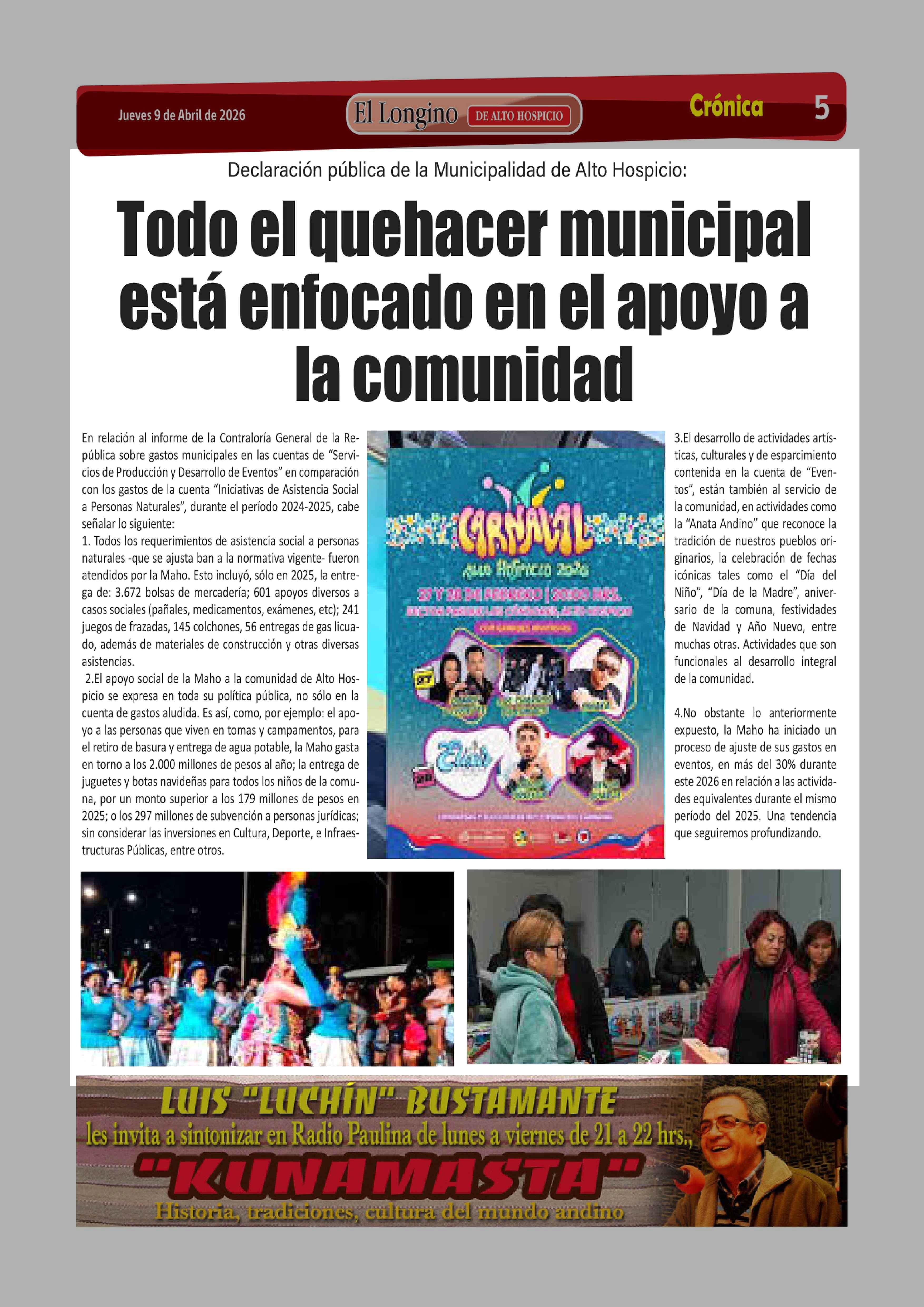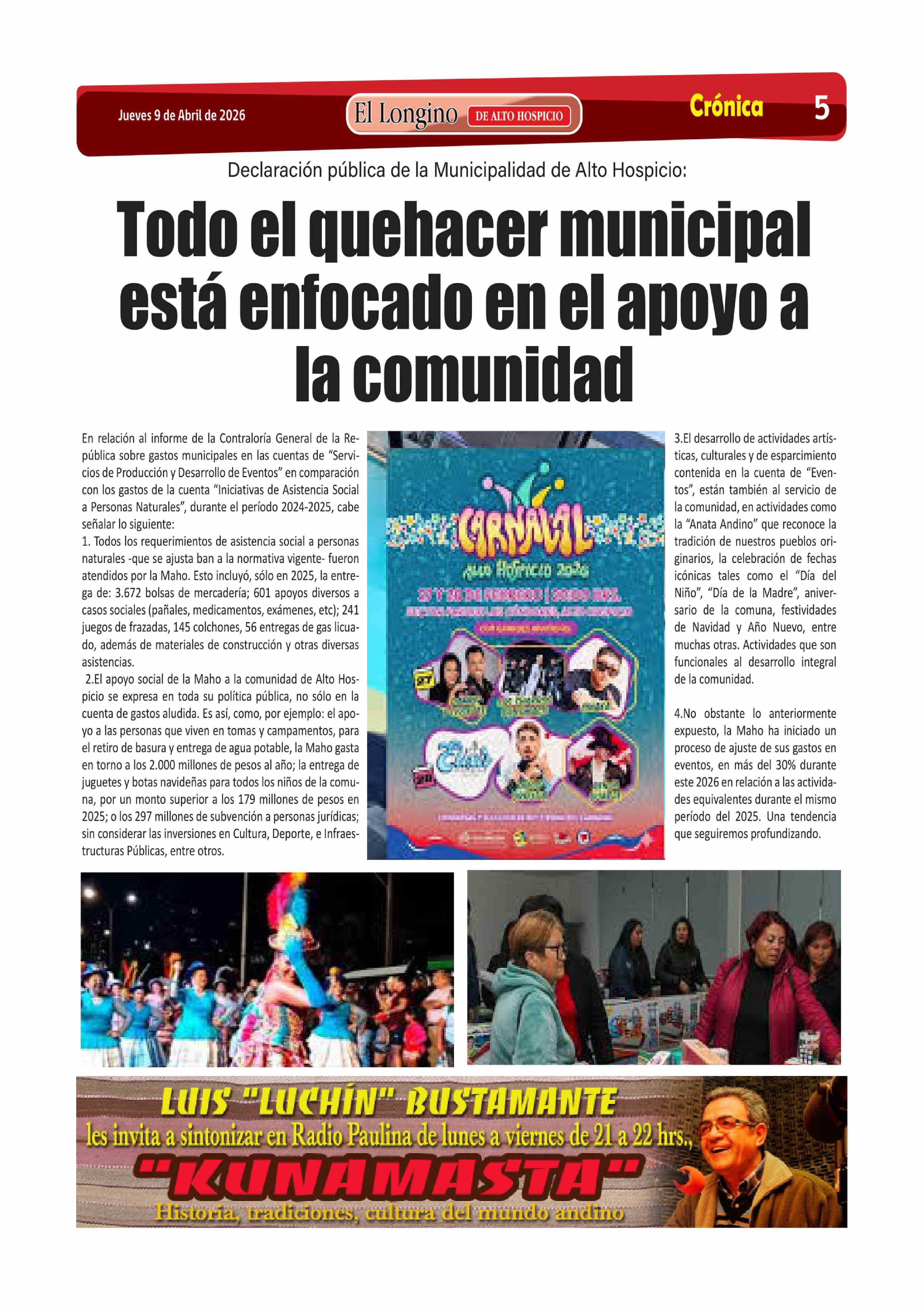 Título: Todo el quehacer municipal está enfocado en el apoyo a la comunidad