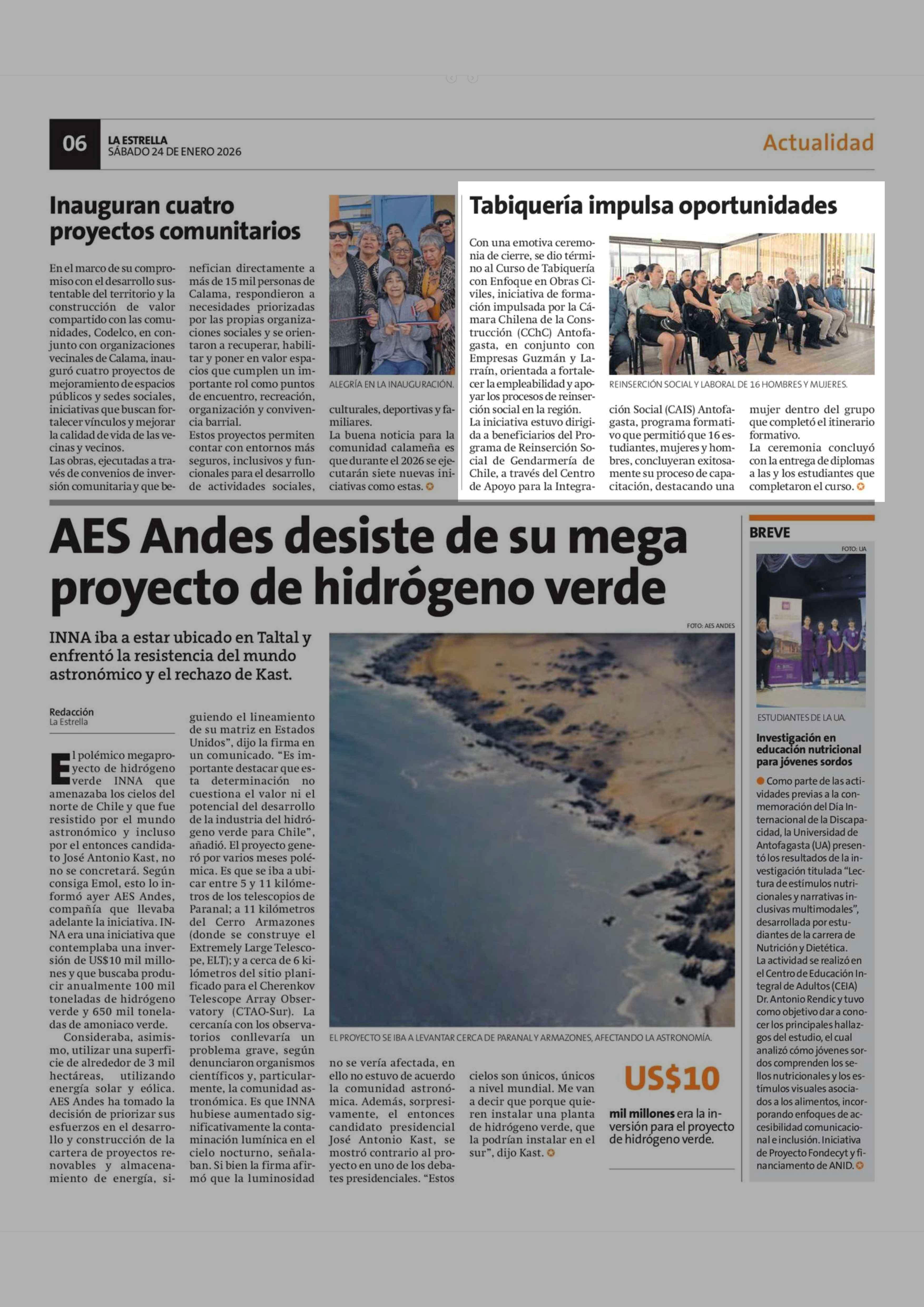 Tabiquería impulsa oportunidades 24-01-2026 La Estrella de Antofagasta |