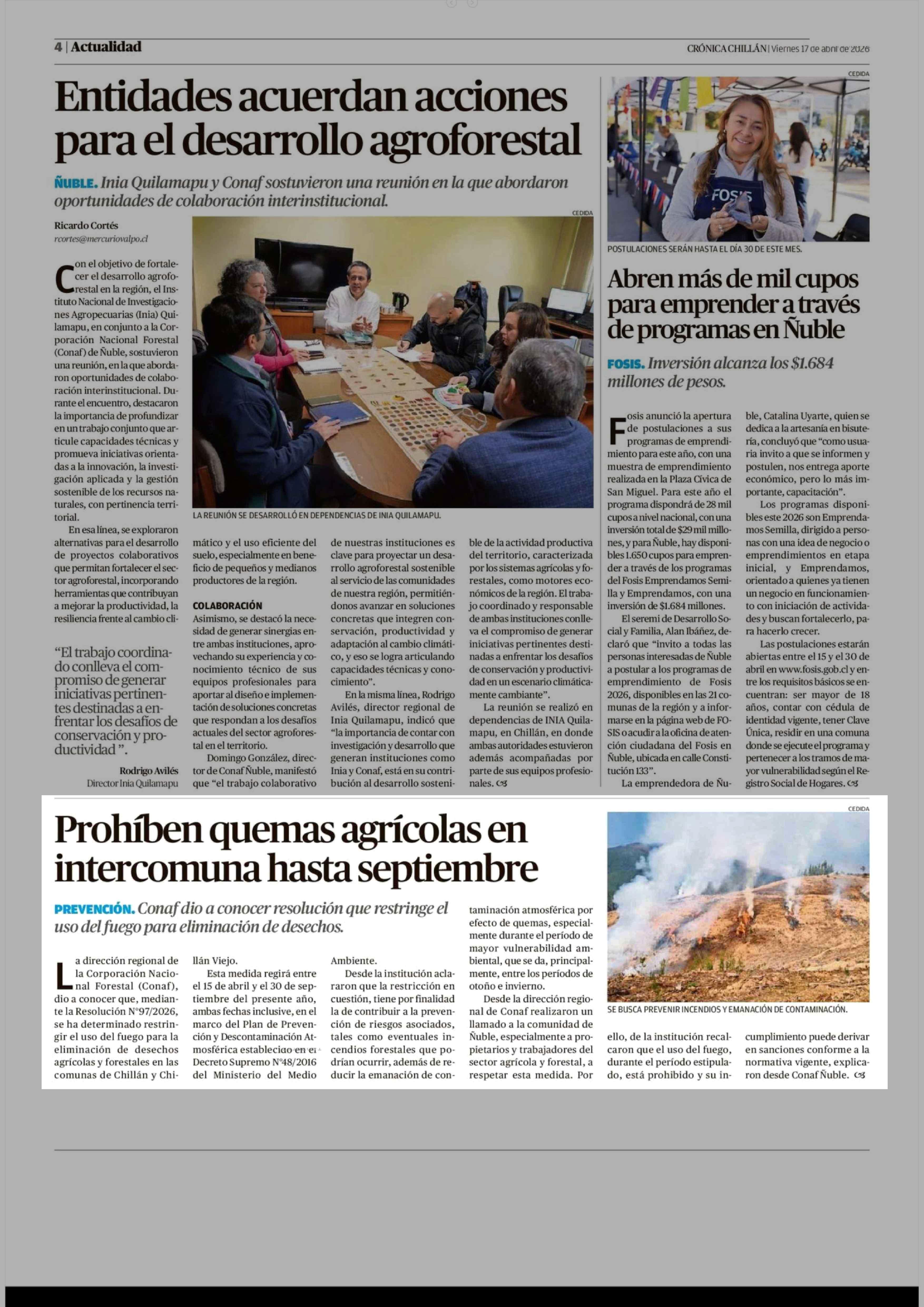 Fecha: 17-04-2026 Sector: Noticia general Región: Región del Ñuble