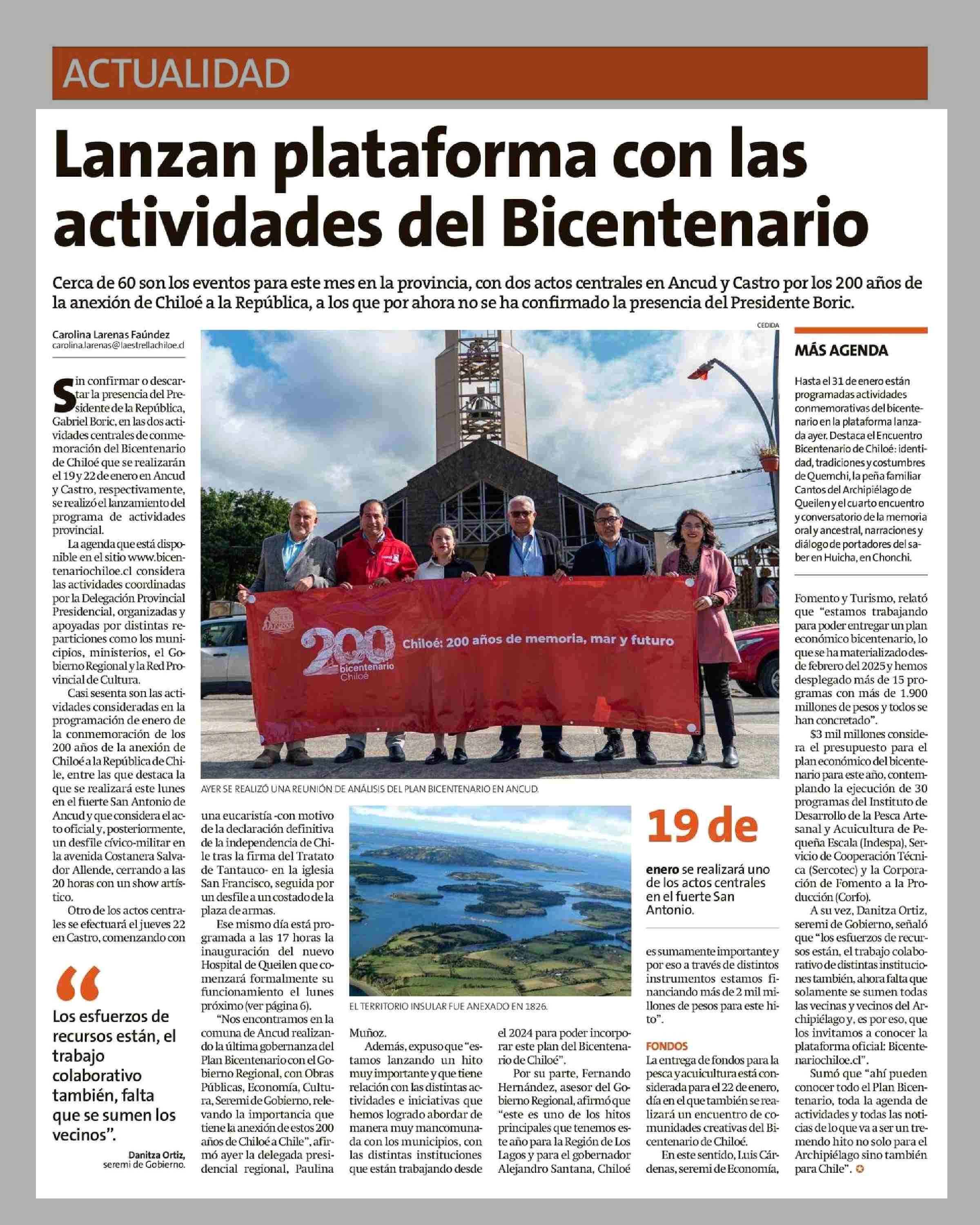 Lanzan plataforma con las actividades del Bicentenario 16-01-2026 La Estrella de Chiloé |