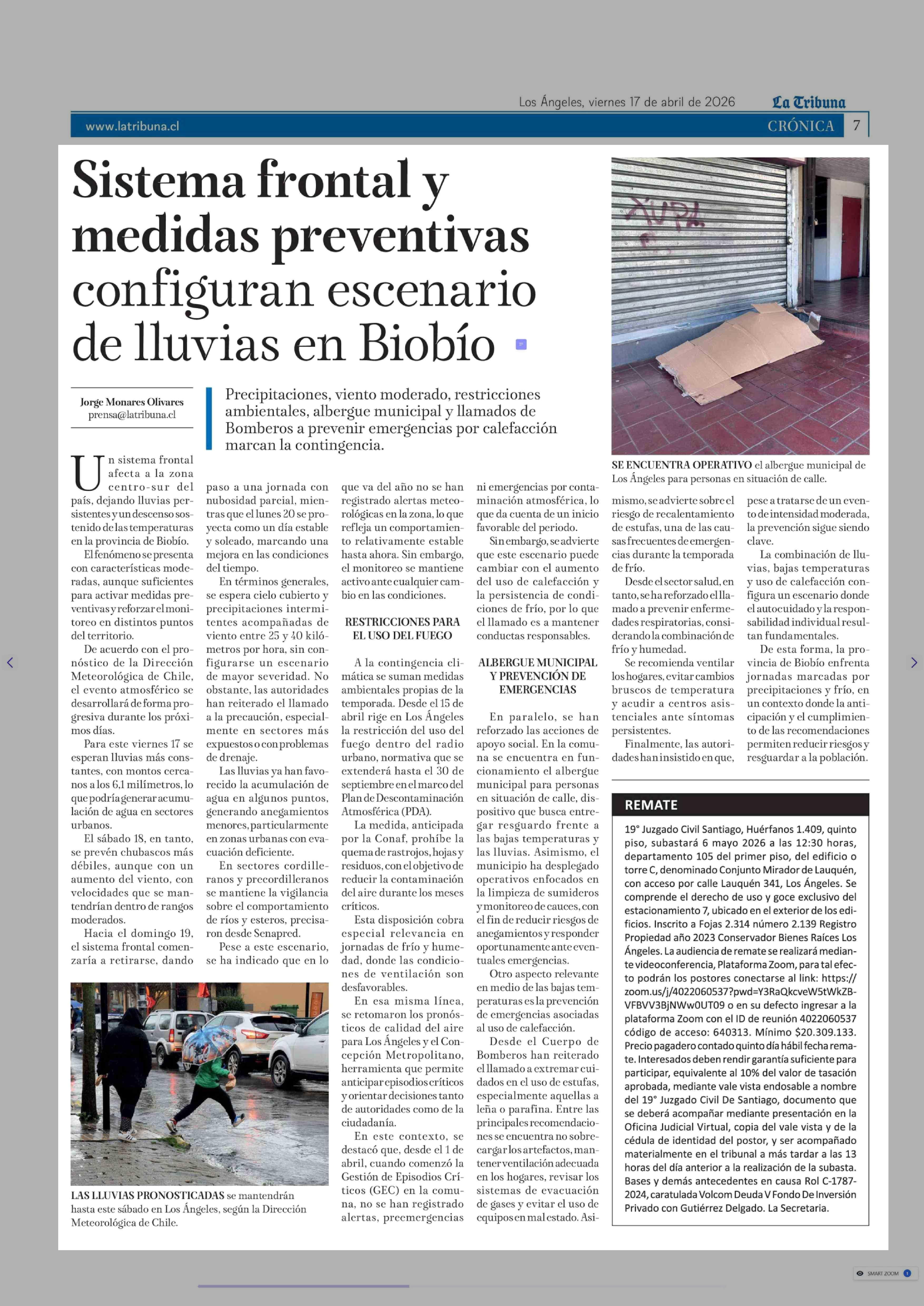 Sistema frontal y medidas preventivas configuran escenario de lluvias en Biobío 17-04-2026 La Tribuna |