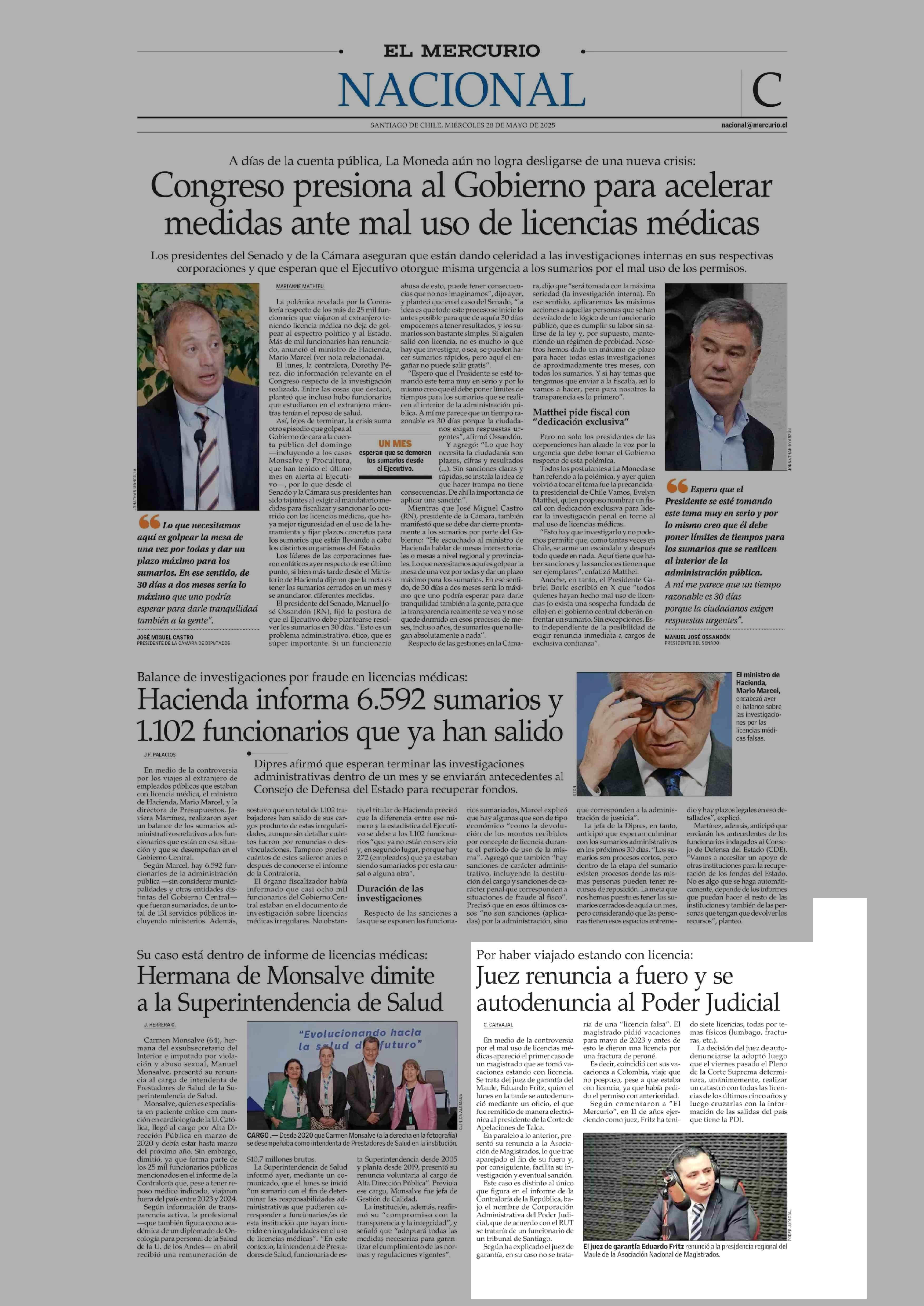 Juez renuncia a fuero y se autodenuncia al Poder Judicial 28-05-2025 El Mercurio |