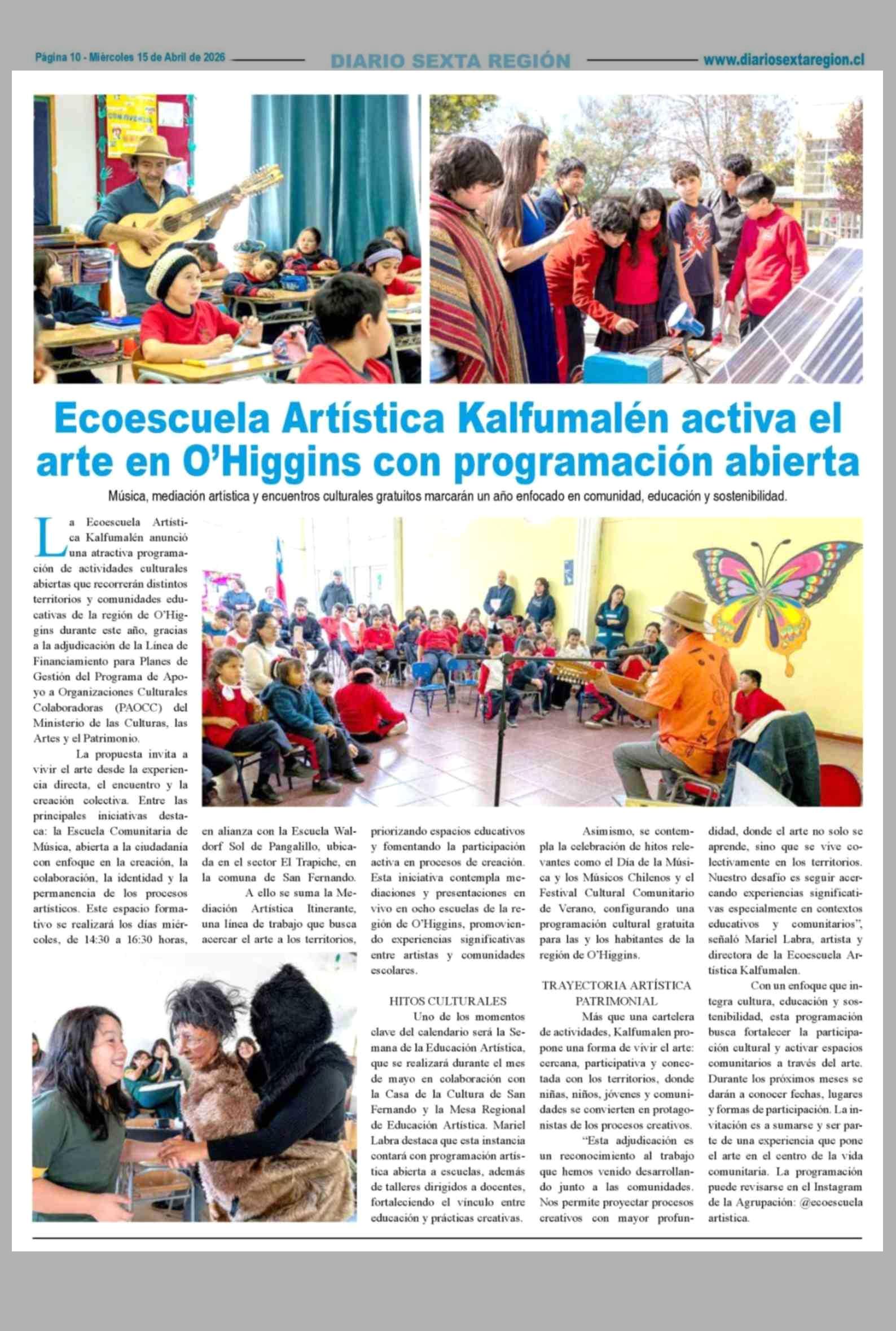 Ecoescuela Artística Kalfumalén activa el arte en O'Higgins con programación abierta 15-04-2026 Diario VI Región |
