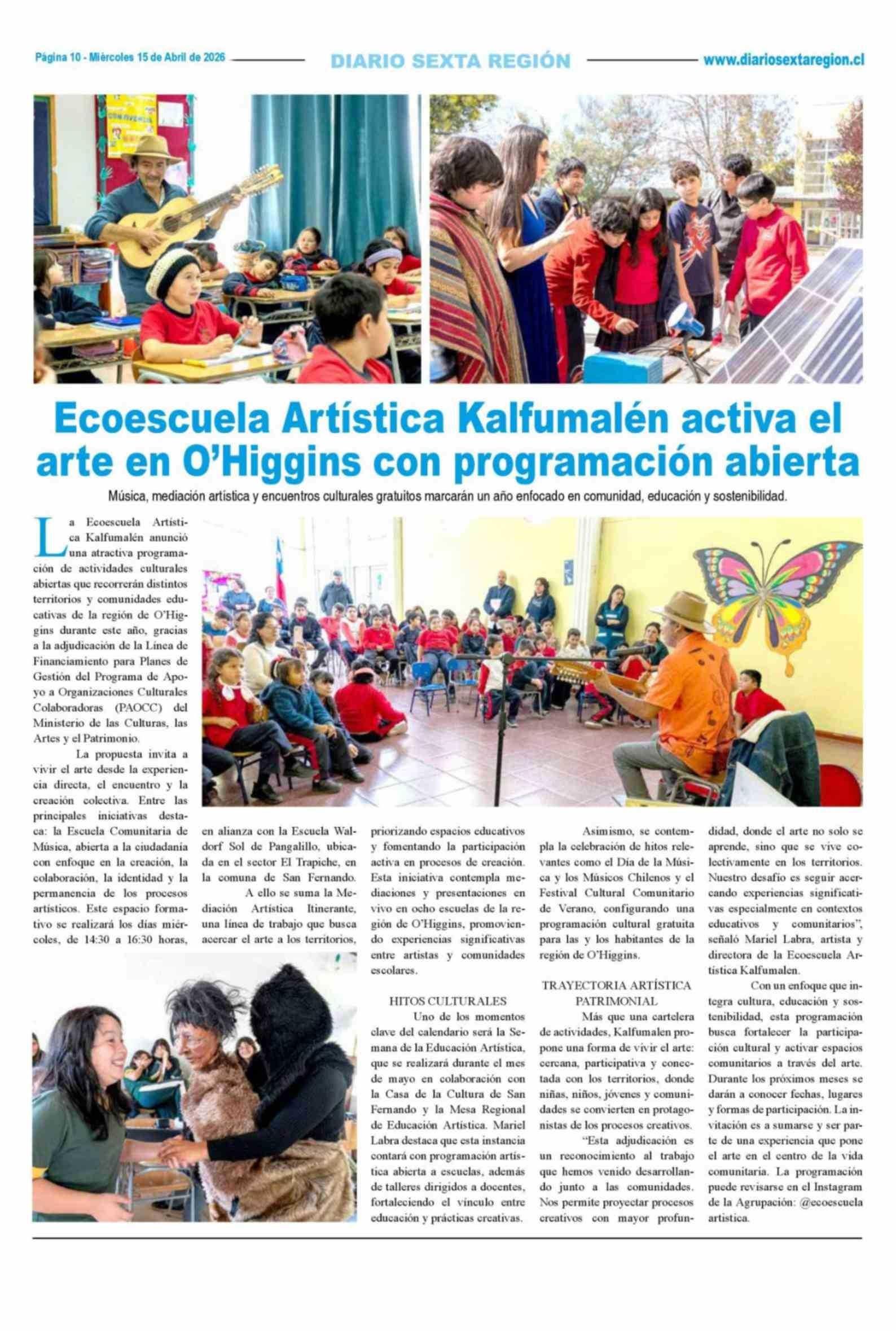 Título: Ecoescuela Artística Kalfumalén activa el arte en O'Higgins con programación abierta