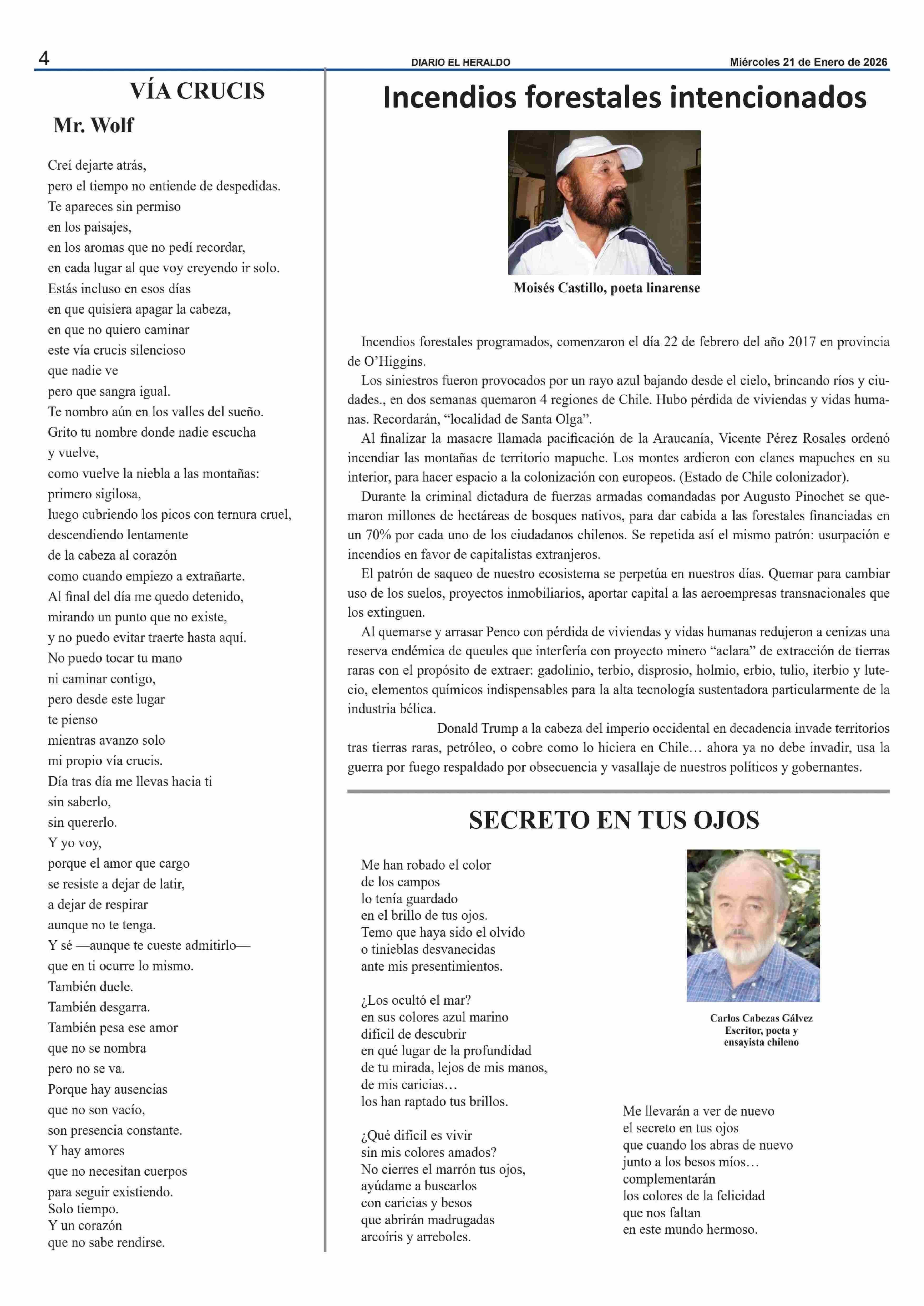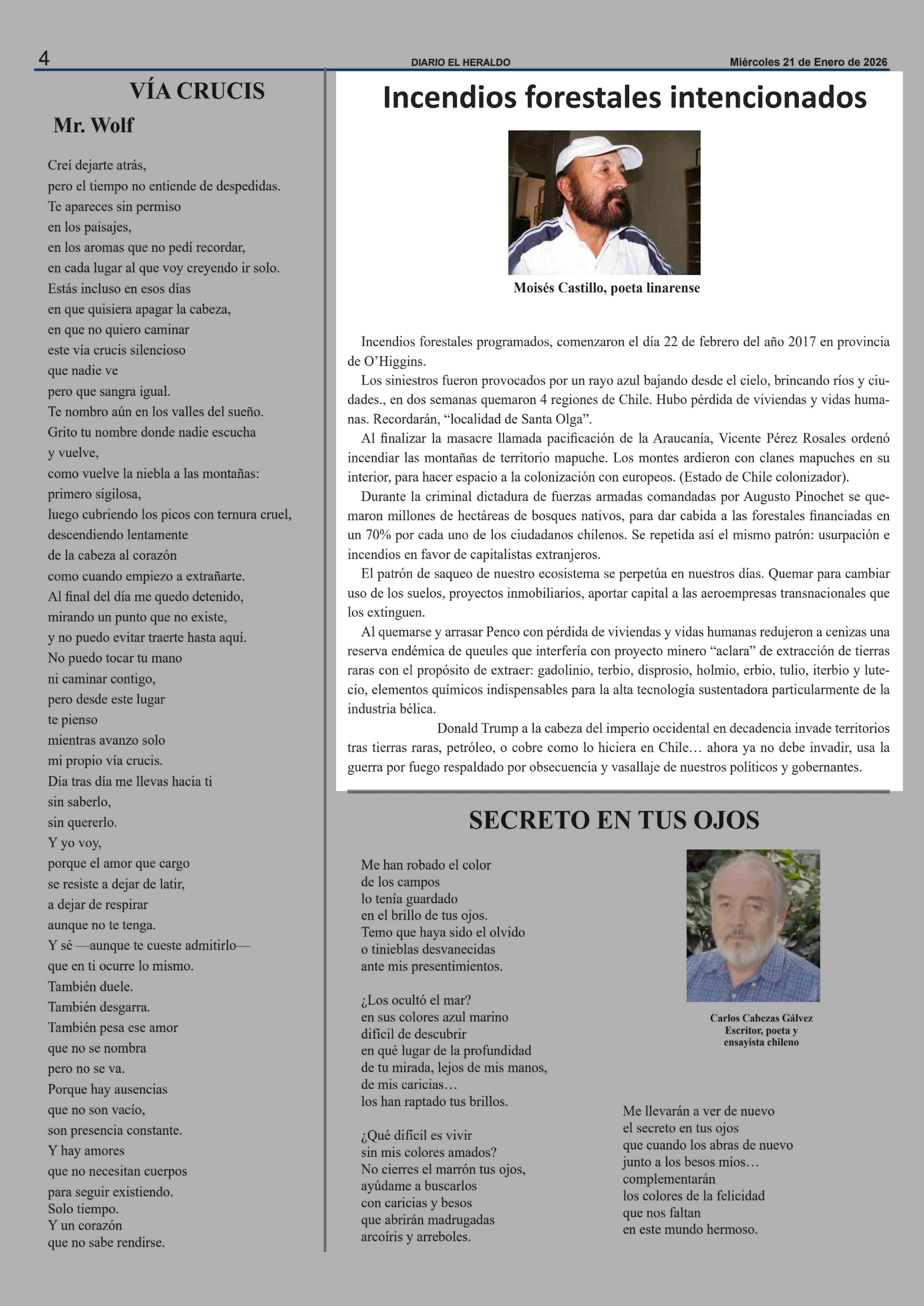 Columnas de Opinión: Incendios forestales intencionados 21-01-2026 El Heraldo |